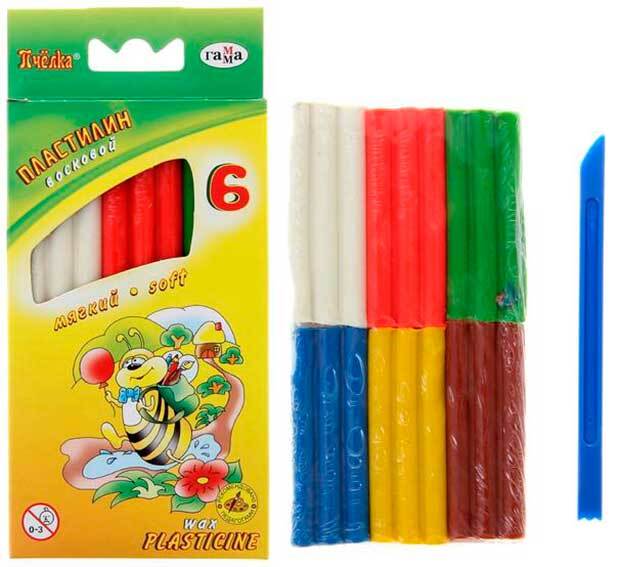 Пластилин 6цв., 73гр. ГАММА "Пчелка" 280029н воск.,к/к
