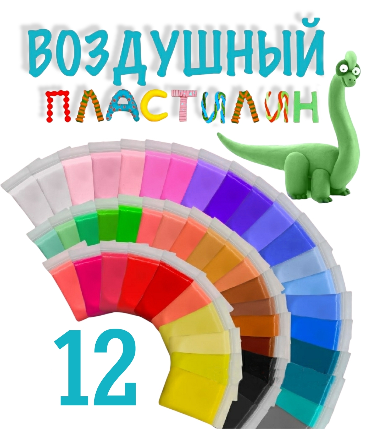 Воздушный пластилин - набор 12 шт. / Набор для лепки / Масса для лепки / Супер легкий пластилин