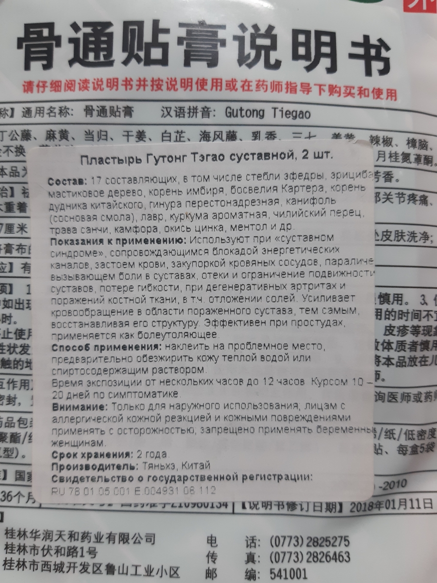 Пластырь обезболивающий Пластырь Тяньхэ Чжуйфэн Гао, 8 шт. комплект
