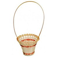 Миниатюра Корзинка плетеная, бело желтая, 4х2,5 см