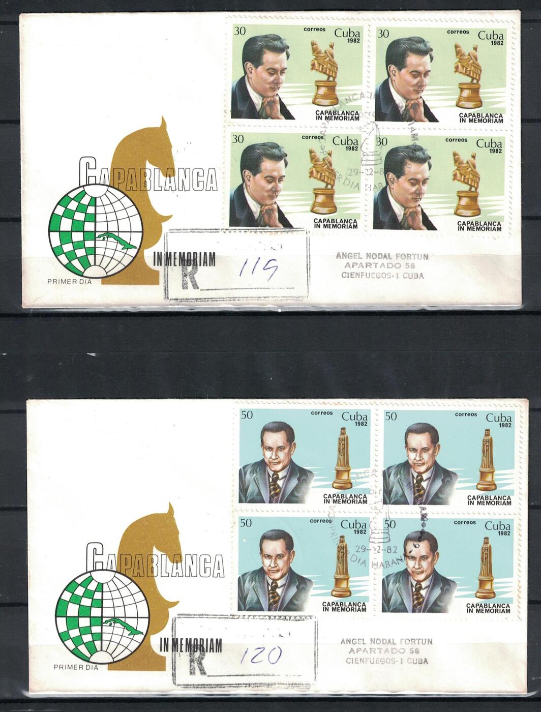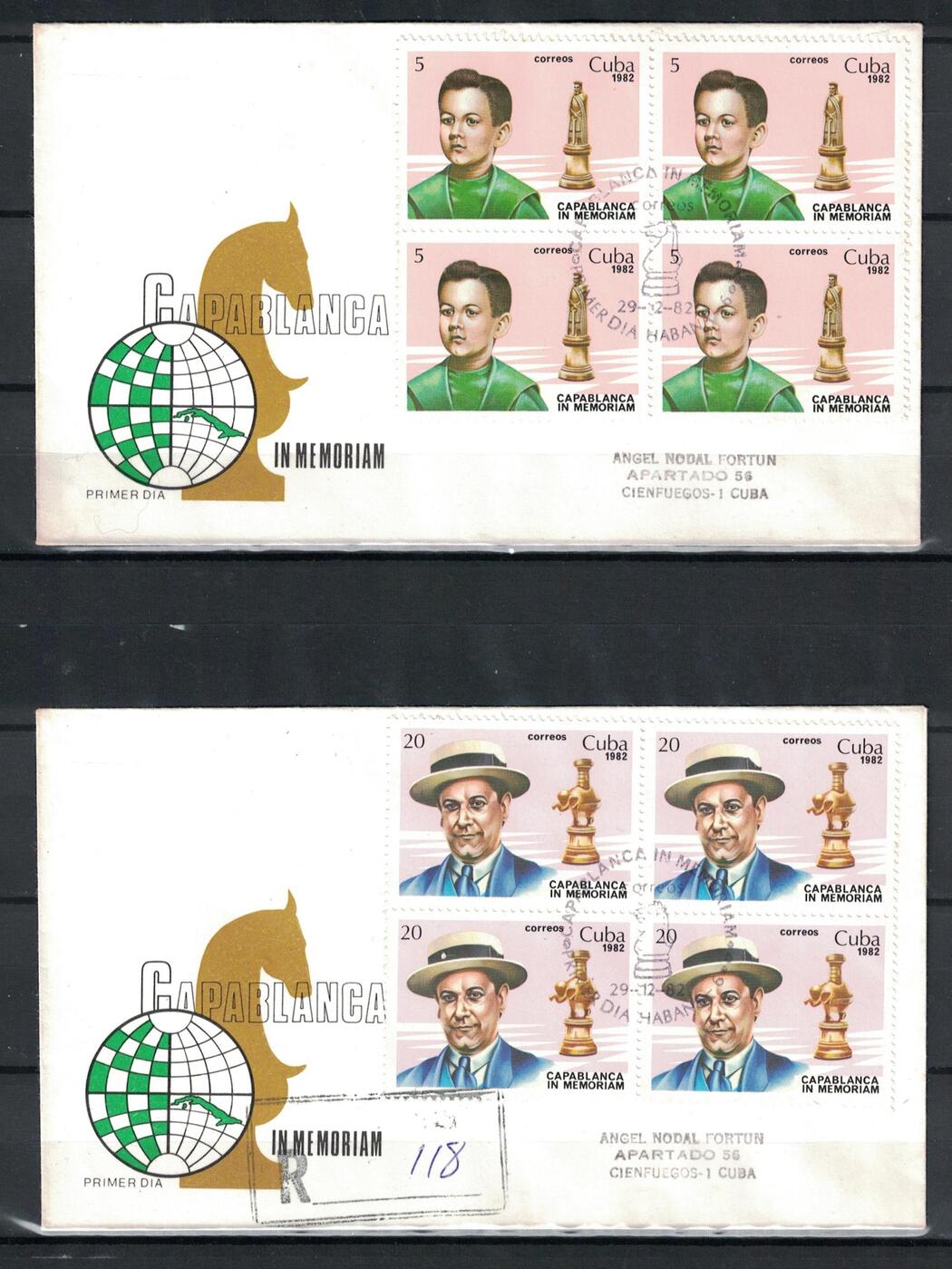 Конверт первого дня (КПД) Куба 1982г. "40-я годовщина смерти Хосе Капабланки" Шахматы