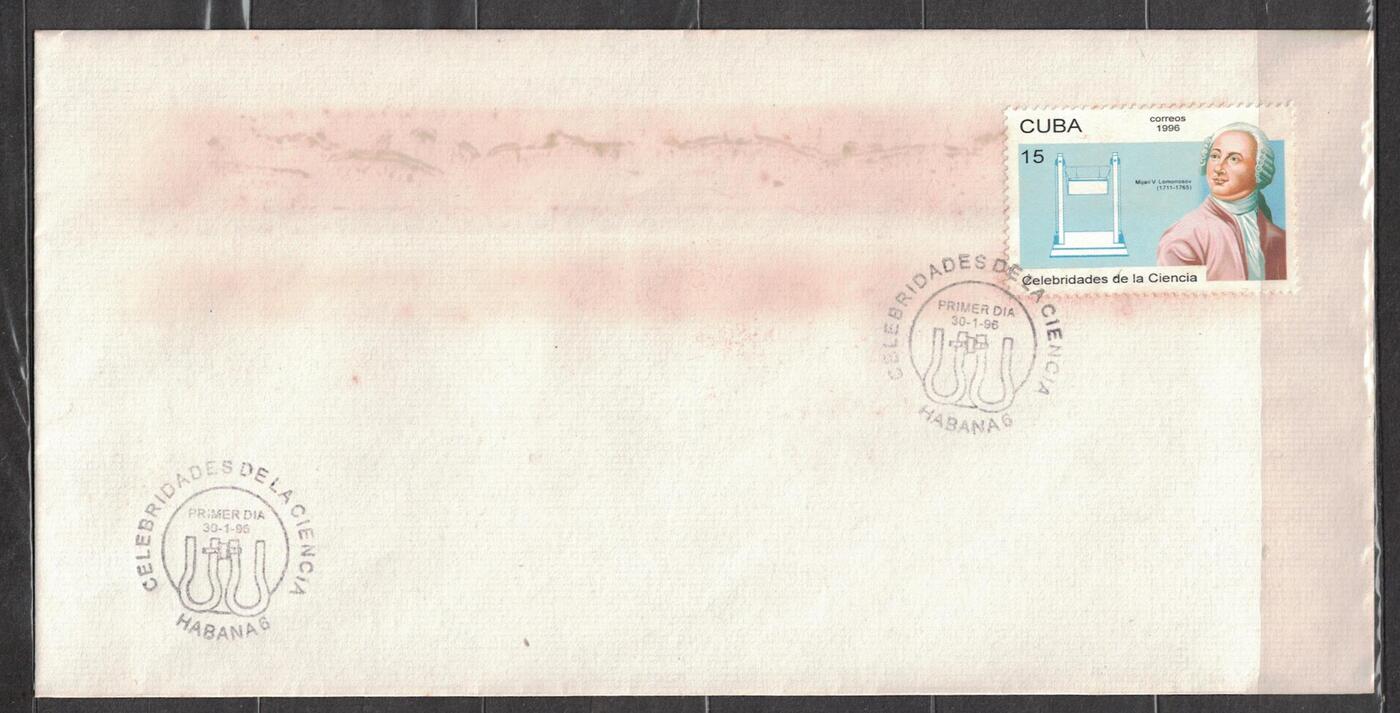 Конверт первого дня (КПД) Куба 1996г. "Ученые - Михаил Ломоносов" Ученые