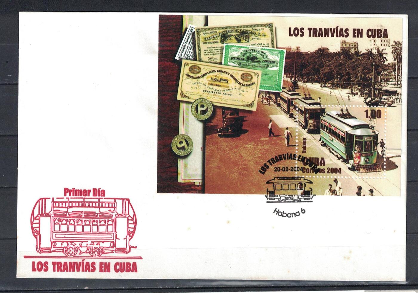 Конверт первого дня (КПД) Куба 2004г. "Трамваи" Трамваи