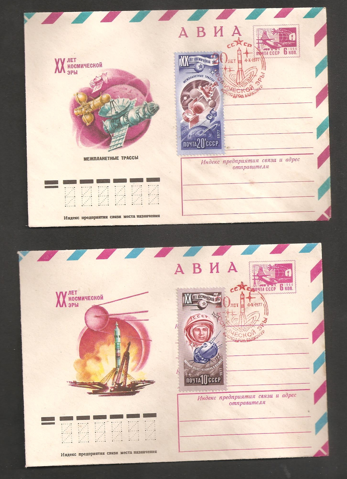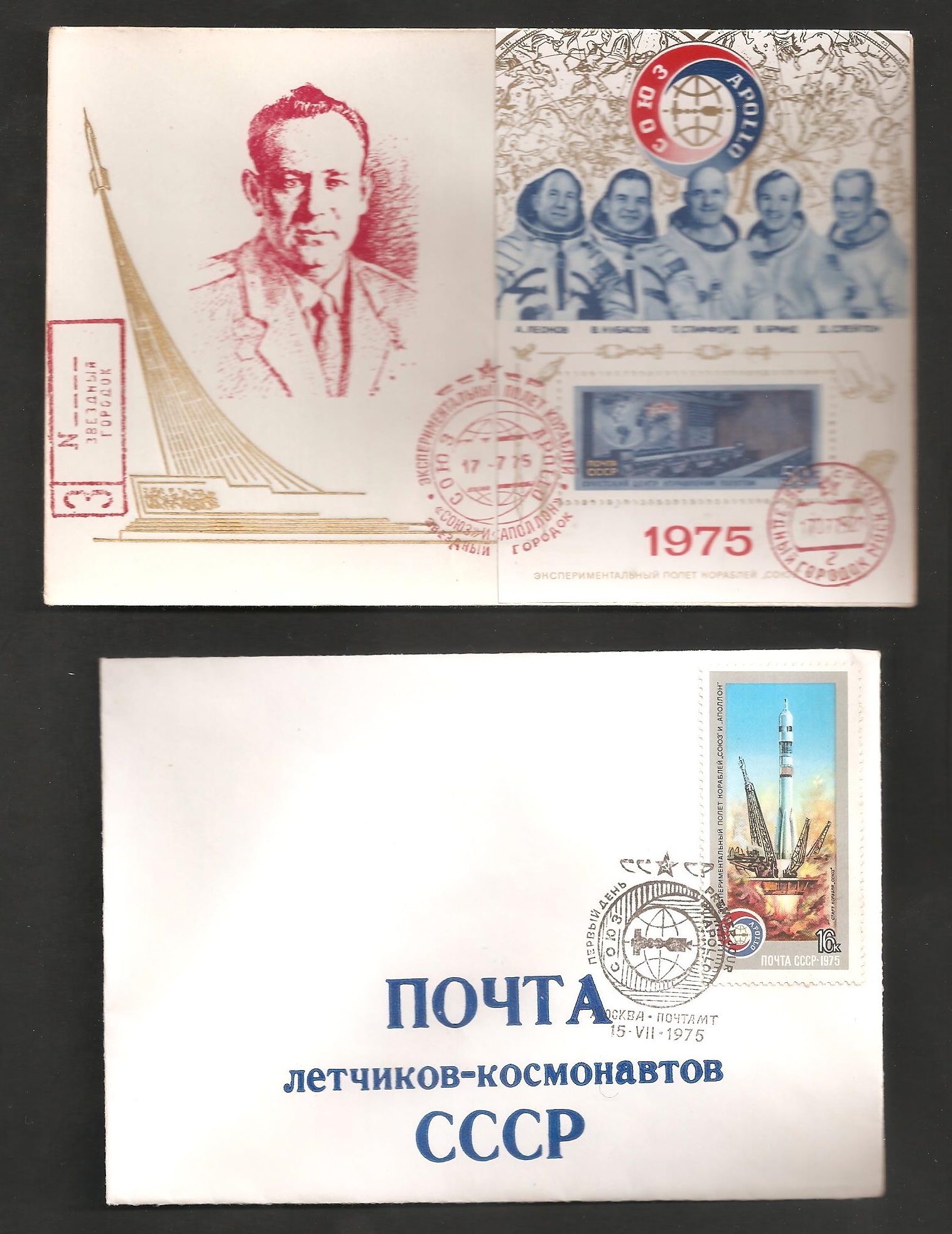 Набор почтовых конвертов из 4-х штук. - ( ЛЕОНОВ, АВИА, МЕЖПЛАНЕТНЫЕ ТРАССЫ, СОЮЗ И АПОЛЛОН, ПЕРВЫЙ ДЕНЬ, ЭКСПЕРИМЕНТАЛЬНЫЙ ПОЛЁТ КОРАБЛЕЙ).