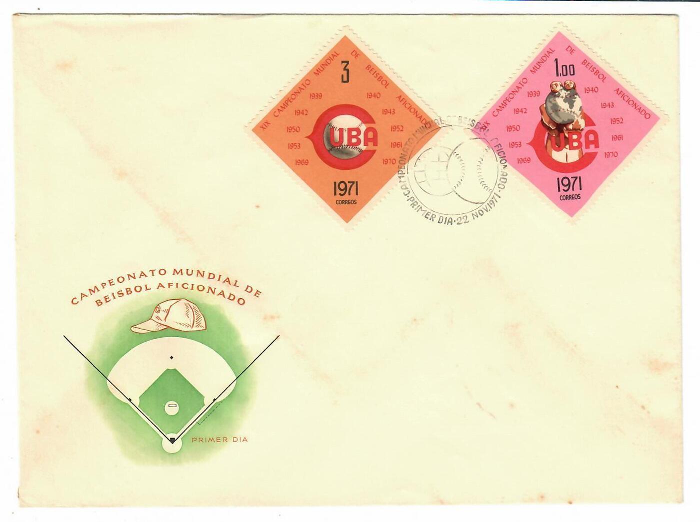 Конверт первого дня (КПД) Куба 1971г. "Чемпионат мира по любительскому бейсболу" Спорт, Бейсбол