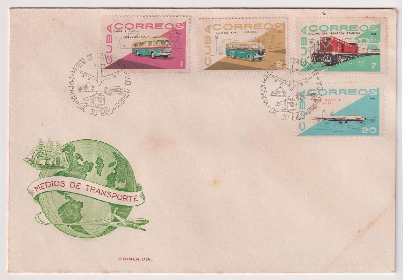 Конверт первого дня (КПД) Куба 1965г. "Кубинский транспорт" Автомобили, Транспорт