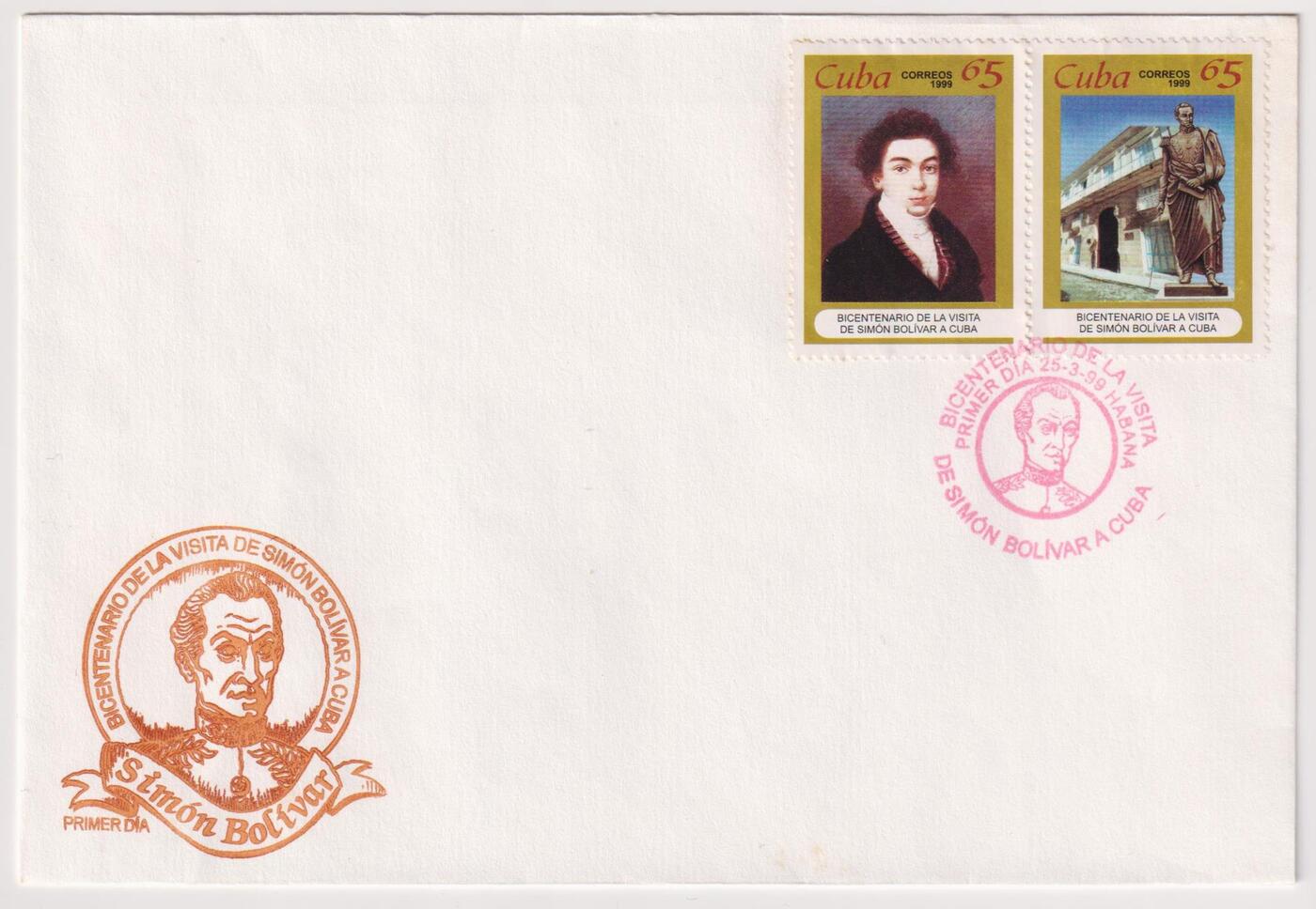 Конверт первого дня (КПД) Куба 1999г. "100-летие визита Симона Боливара на Кубу" Лидеры государств