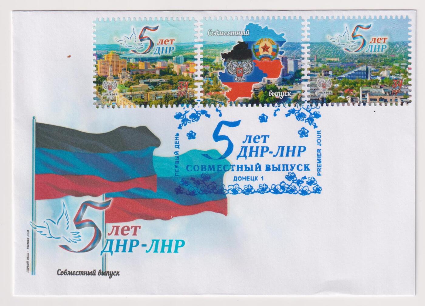 Конверт первого дня (КПД) ДНР 2019г. "5 лет ДНР-ЛНР" Флаги
