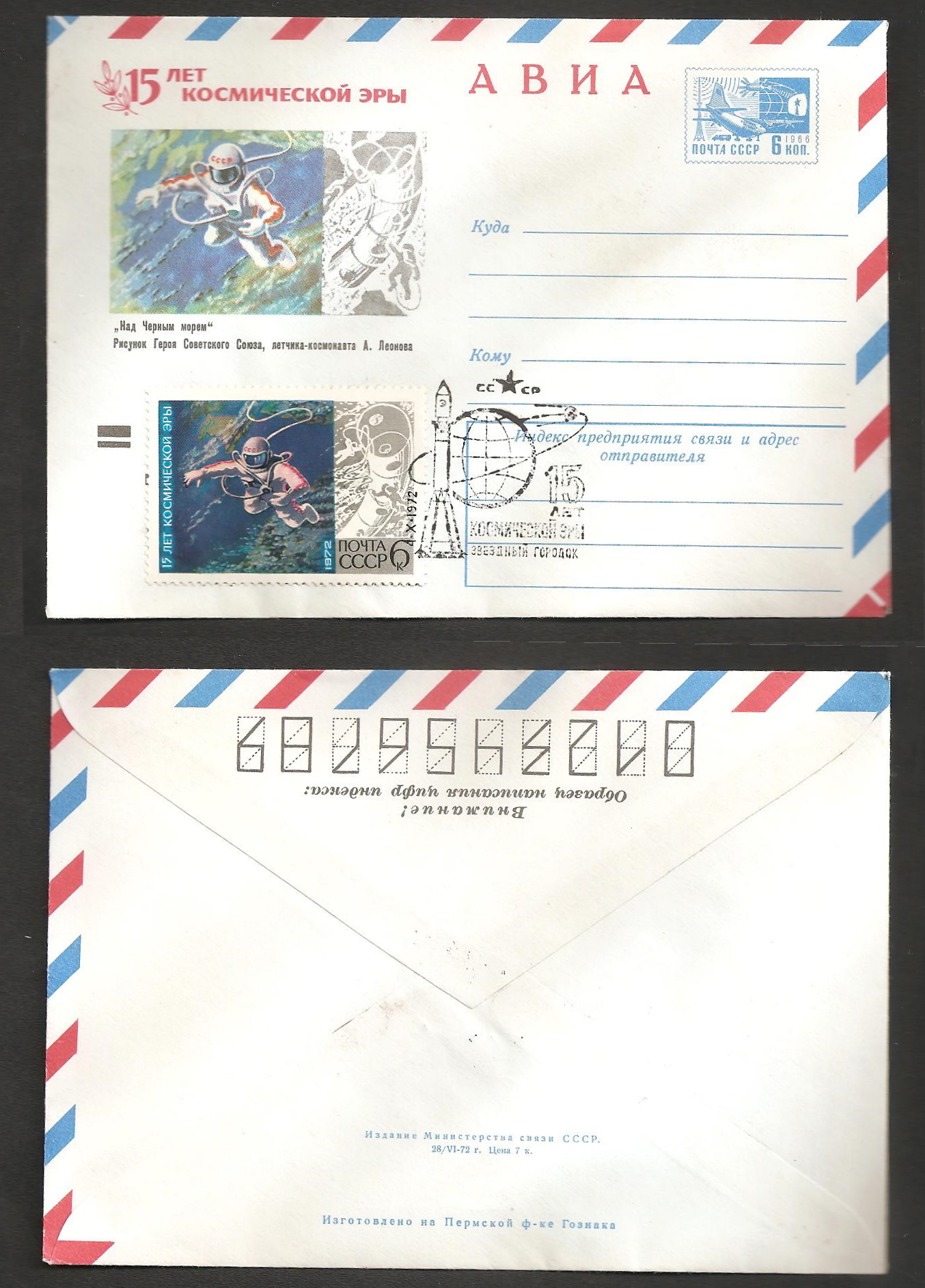 Набор почтовых коллекционных конвертов 2 шт. - АВИА "КОСМОС" со спецгашением СССР