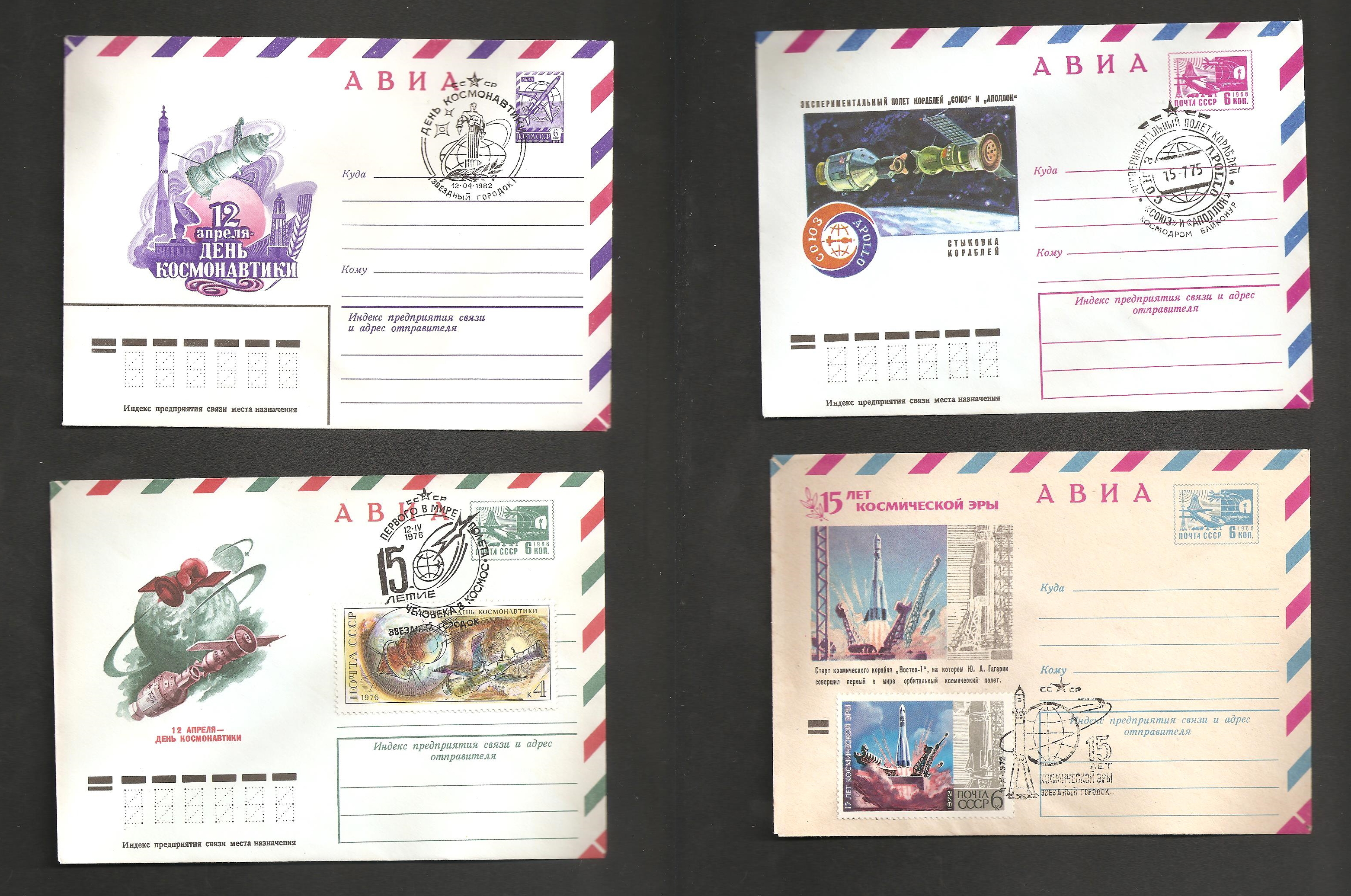 Набор почтовых коллекционных конвертов 5 шт. - АВИА "КОСМОС" со спецгашением СССР