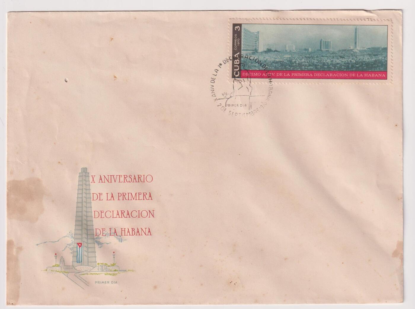 Конверт первого дня (КПД) Куба 1970г. "10 лет Гаванской декларации" Политика