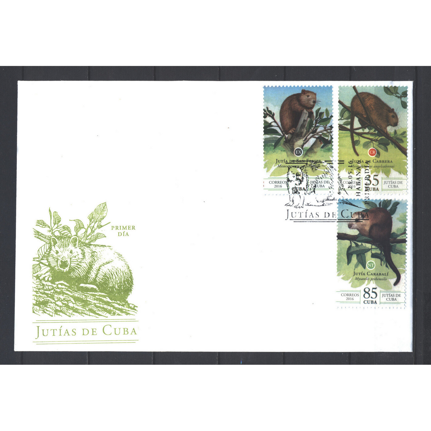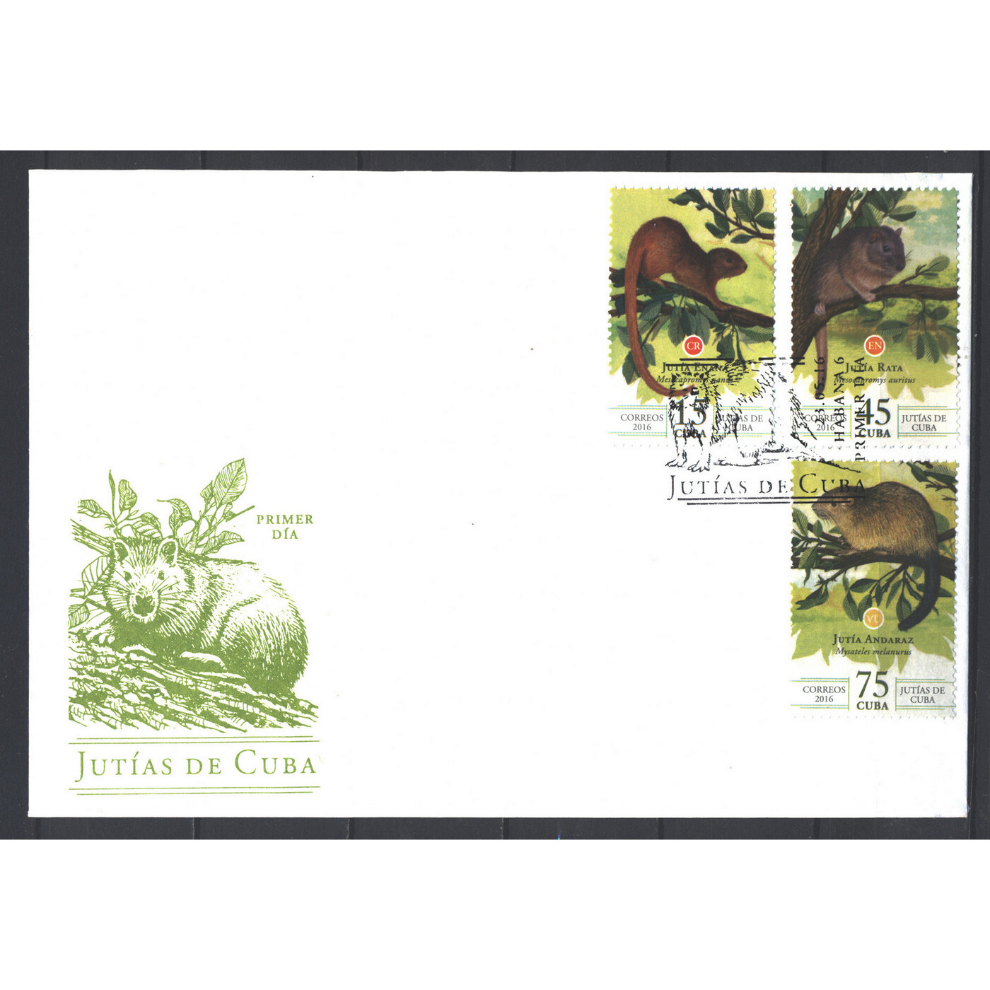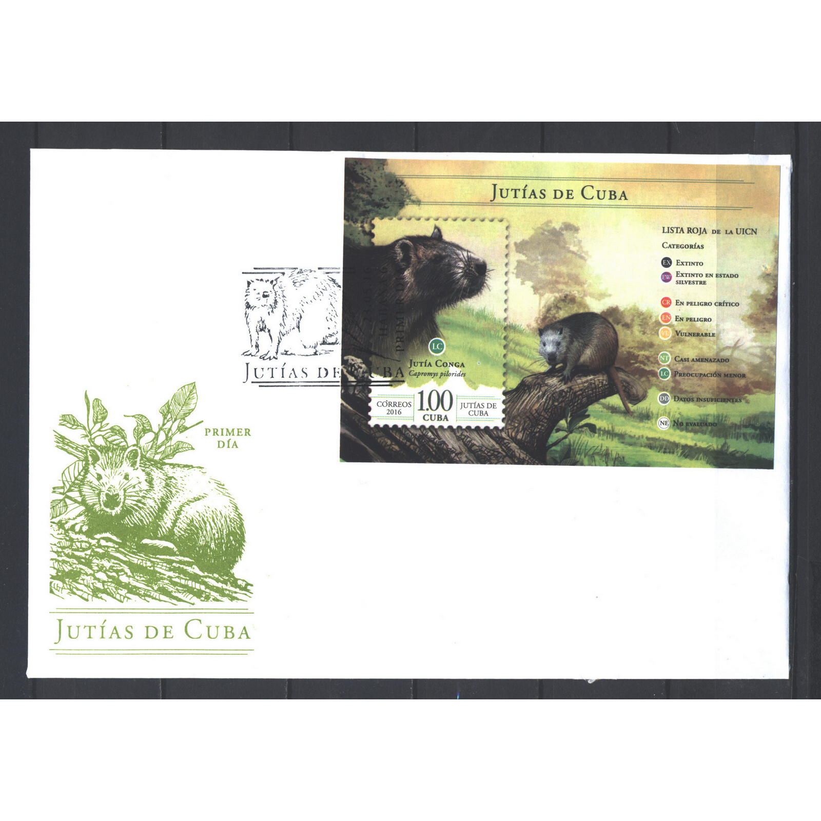 Конверт первого дня (КПД) Куба 2016г. "Фауна - Грызуны Кубы" Грызуны