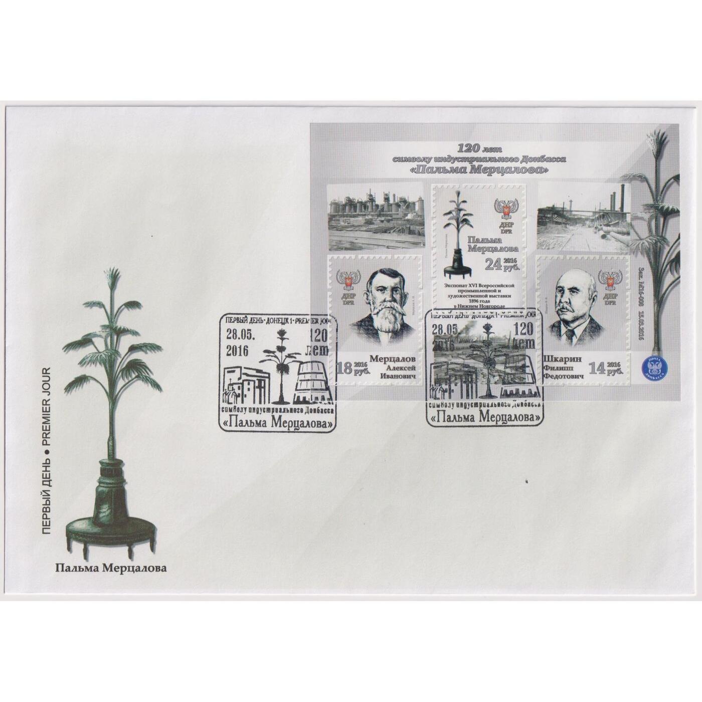 Конверт первого дня (КПД) ДНР 2016г. "Пальма Мерцалова" Искусство, Памятники