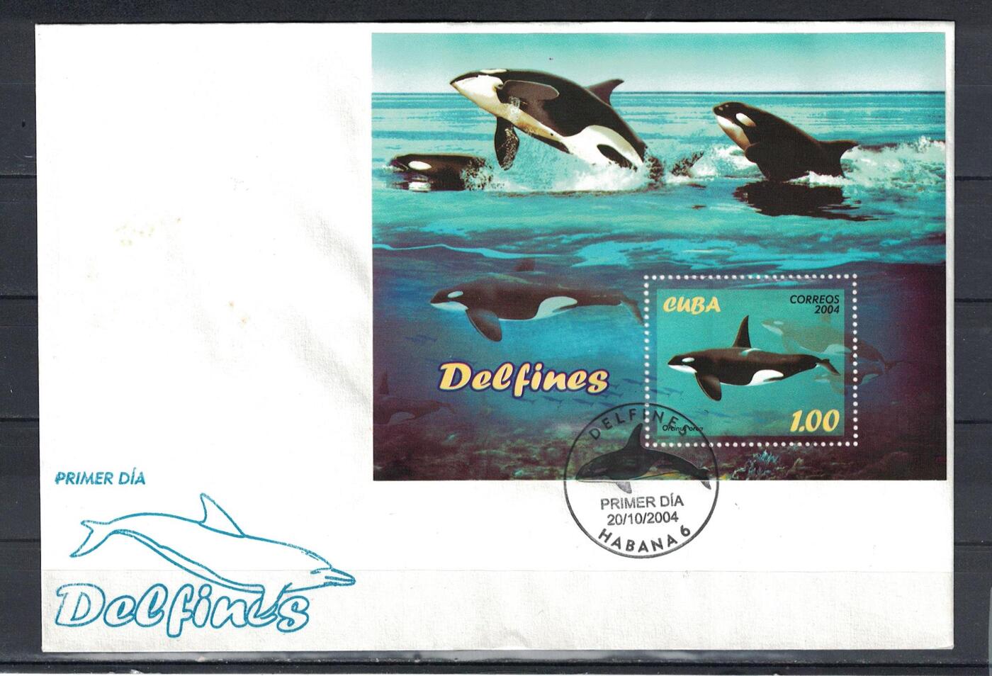Конверт первого дня (КПД) Куба 2004г. "Морские млекопитающие" Жизнь моря, Дельфины