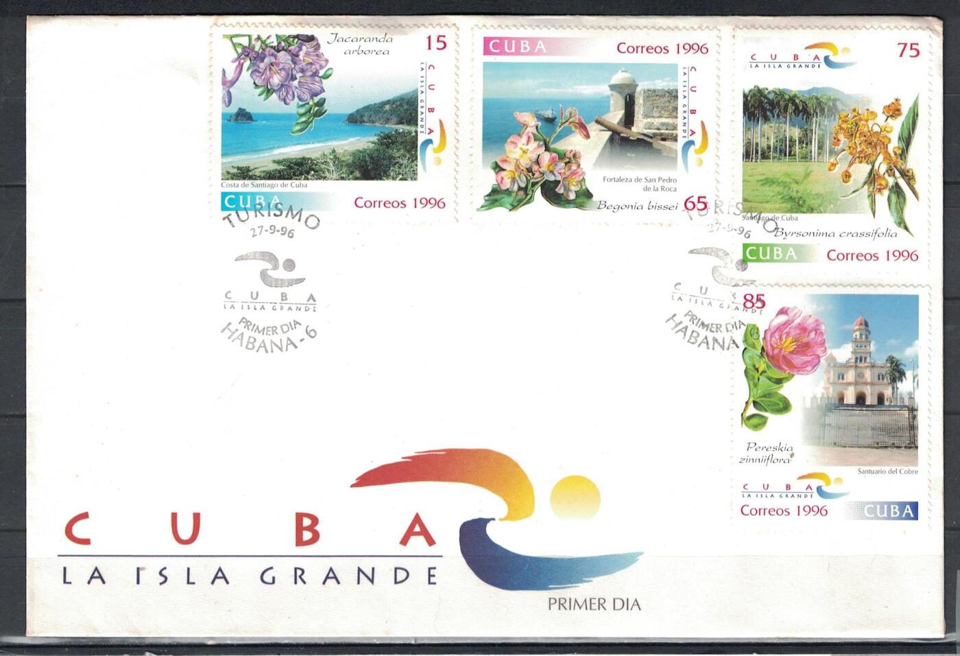 Конверт первого дня (КПД) Россия 1996г. "Туризм и цветы" Цветы, Туризм