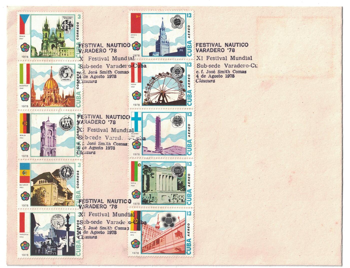 Конверт первого дня (КПД) Куба 1978г. "11-й Всемирный фестиваль молодежи и студентов, Гавана"