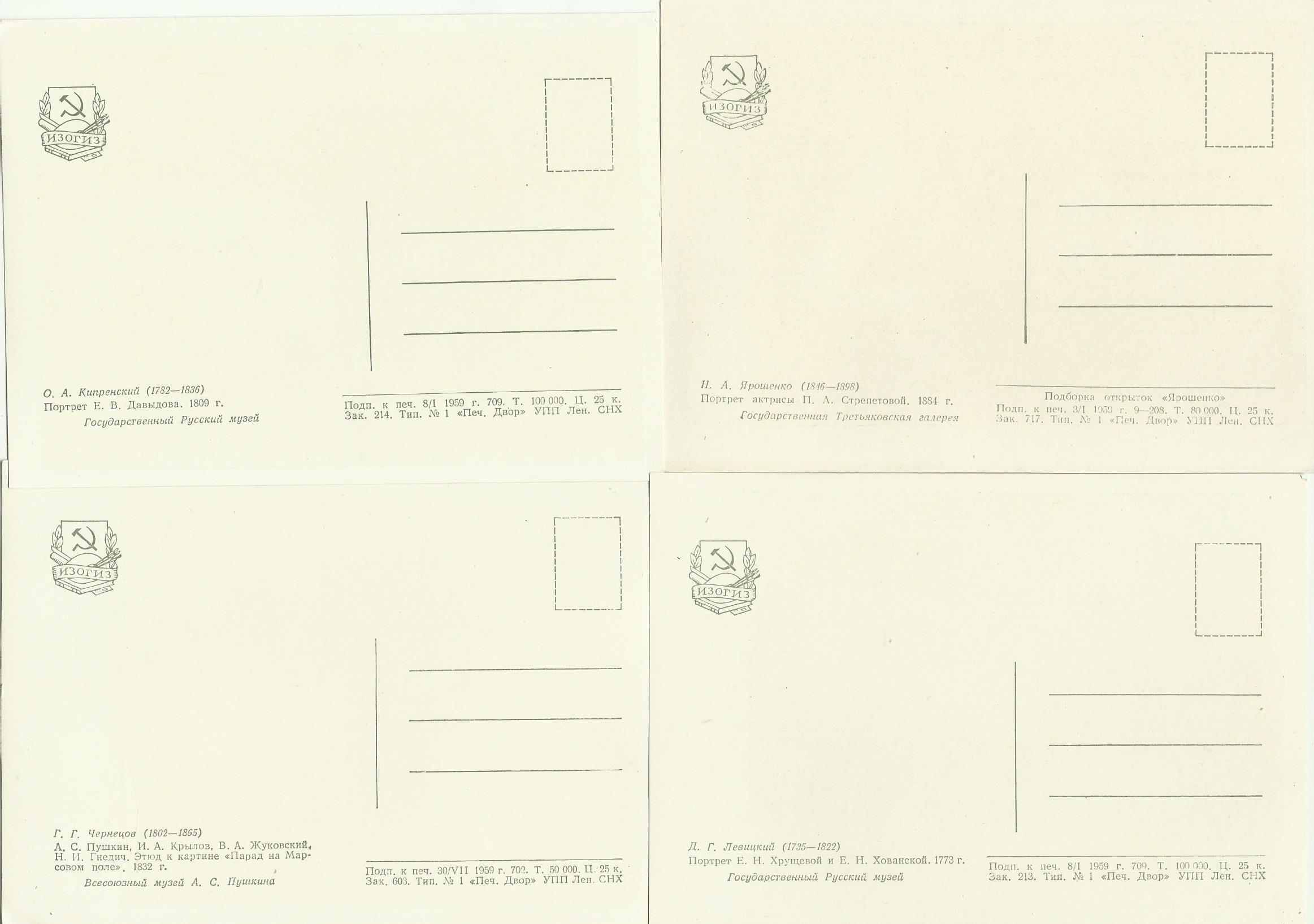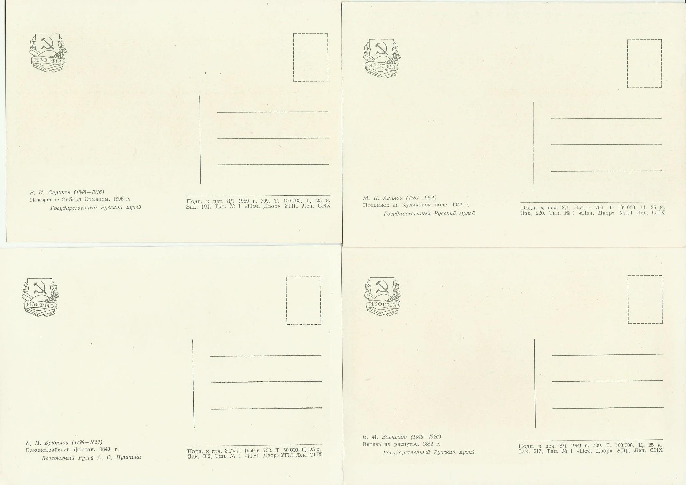 Набор открыток из 8 штук. Разной тематики 1959 год. Изогиз.