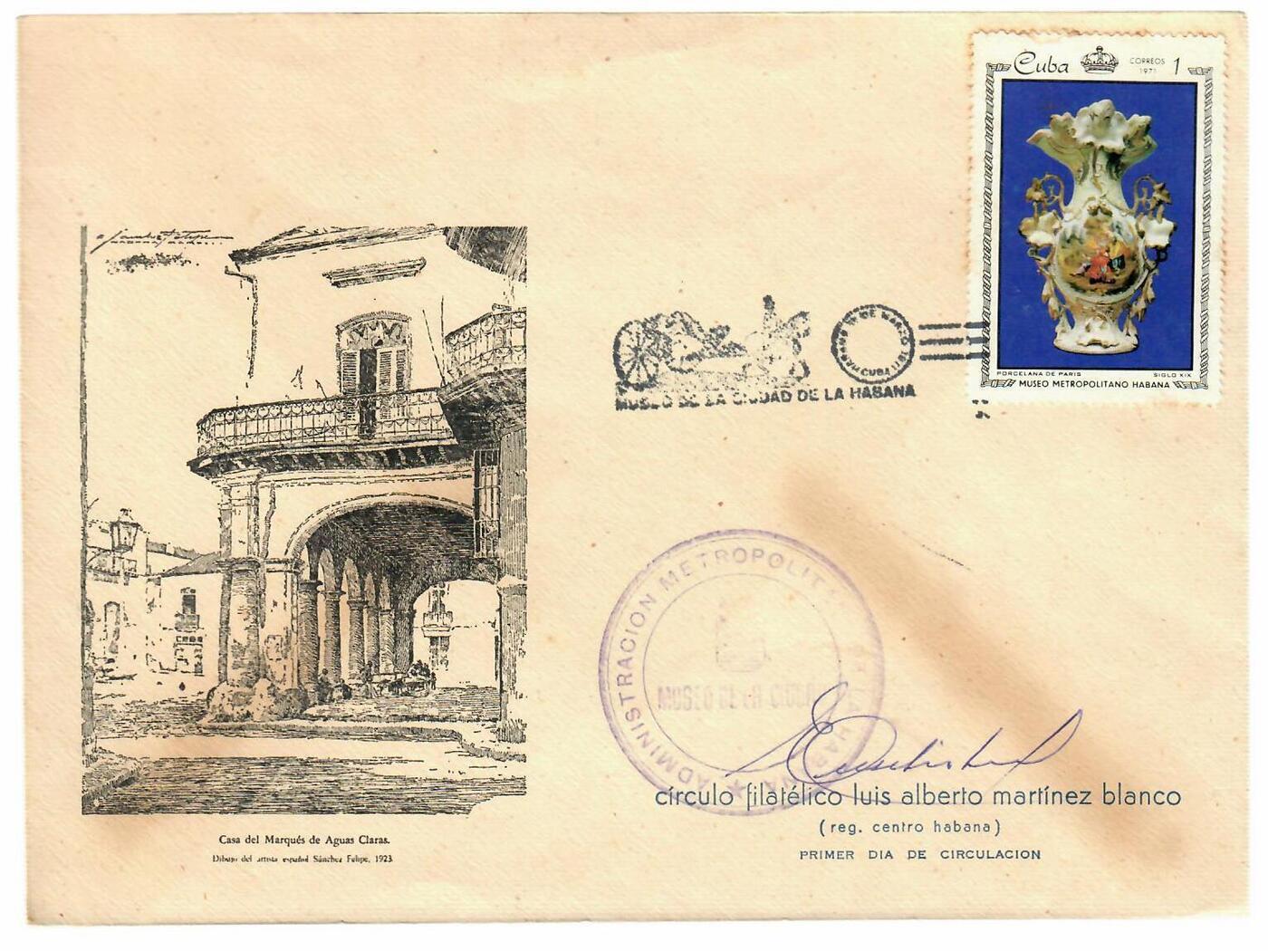Конверт первого дня (КПД) Куба 1971г. "Фарфор и мозаика в музее Метрополитен, Гавана" Искусство