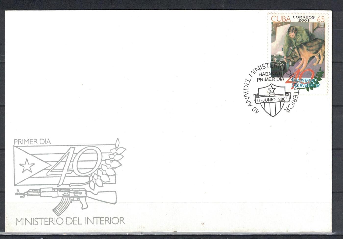 Конверт первого дня (КПД) Куба 2001г. "40 лет Министерству внутренних дел" Собаки, Погранслужба