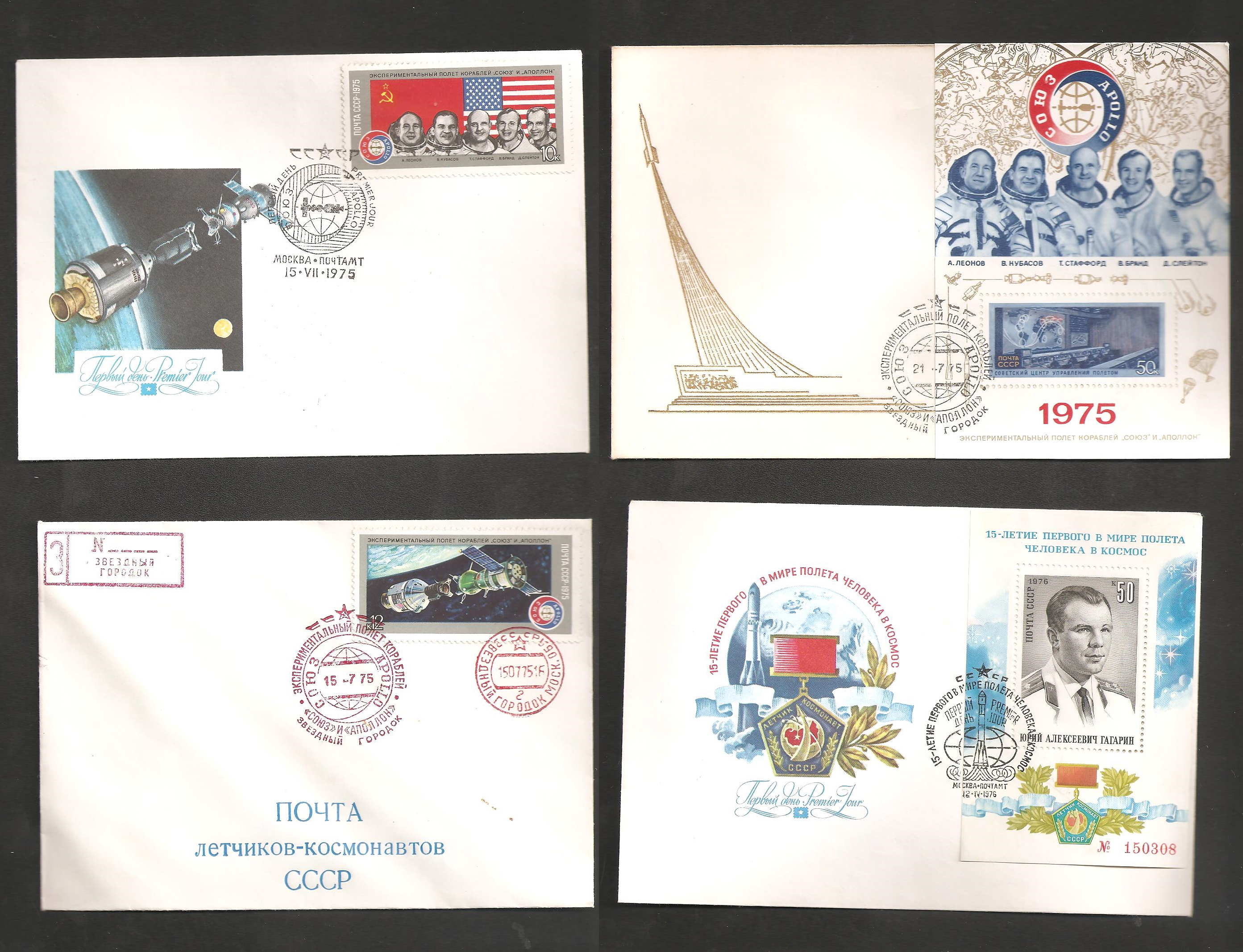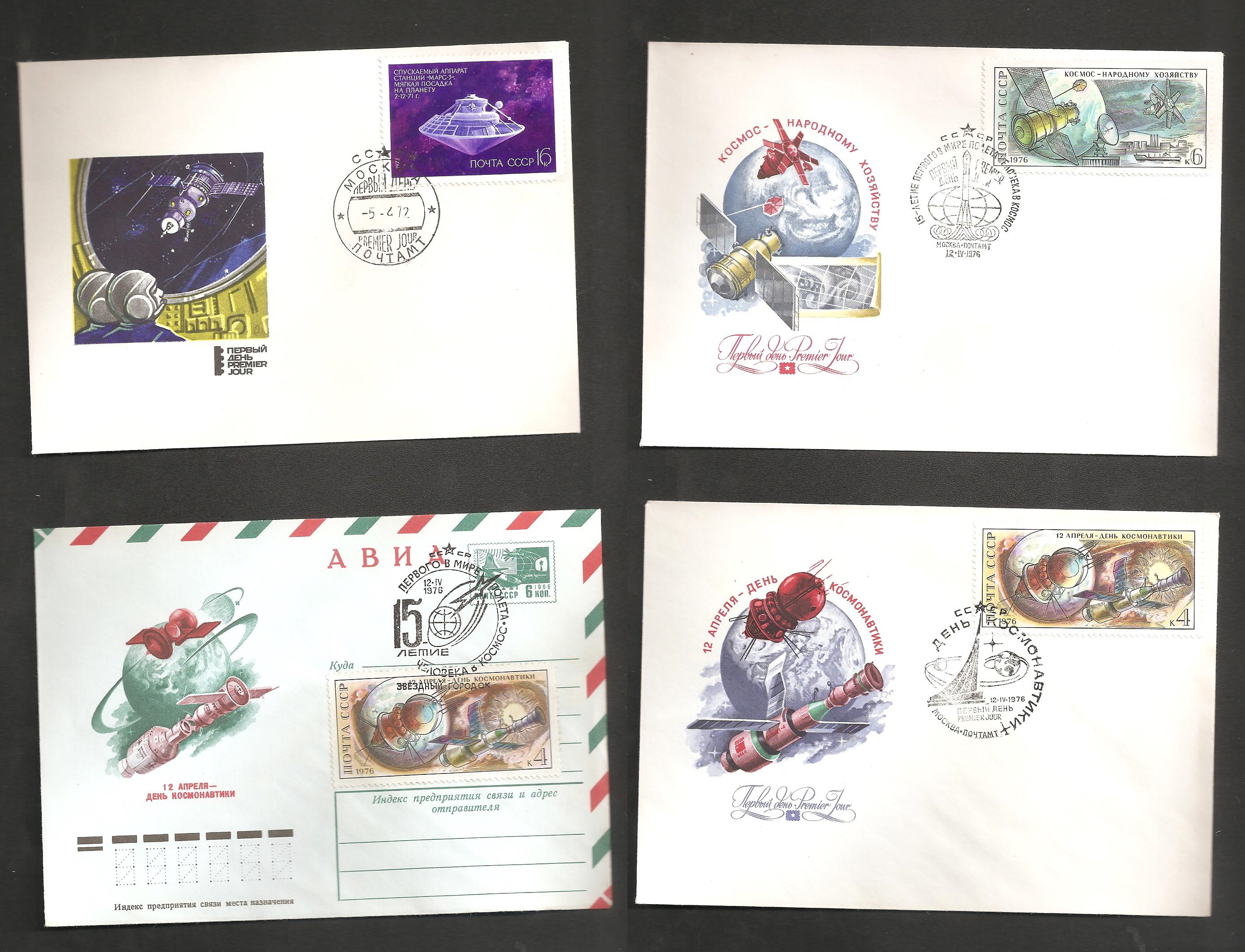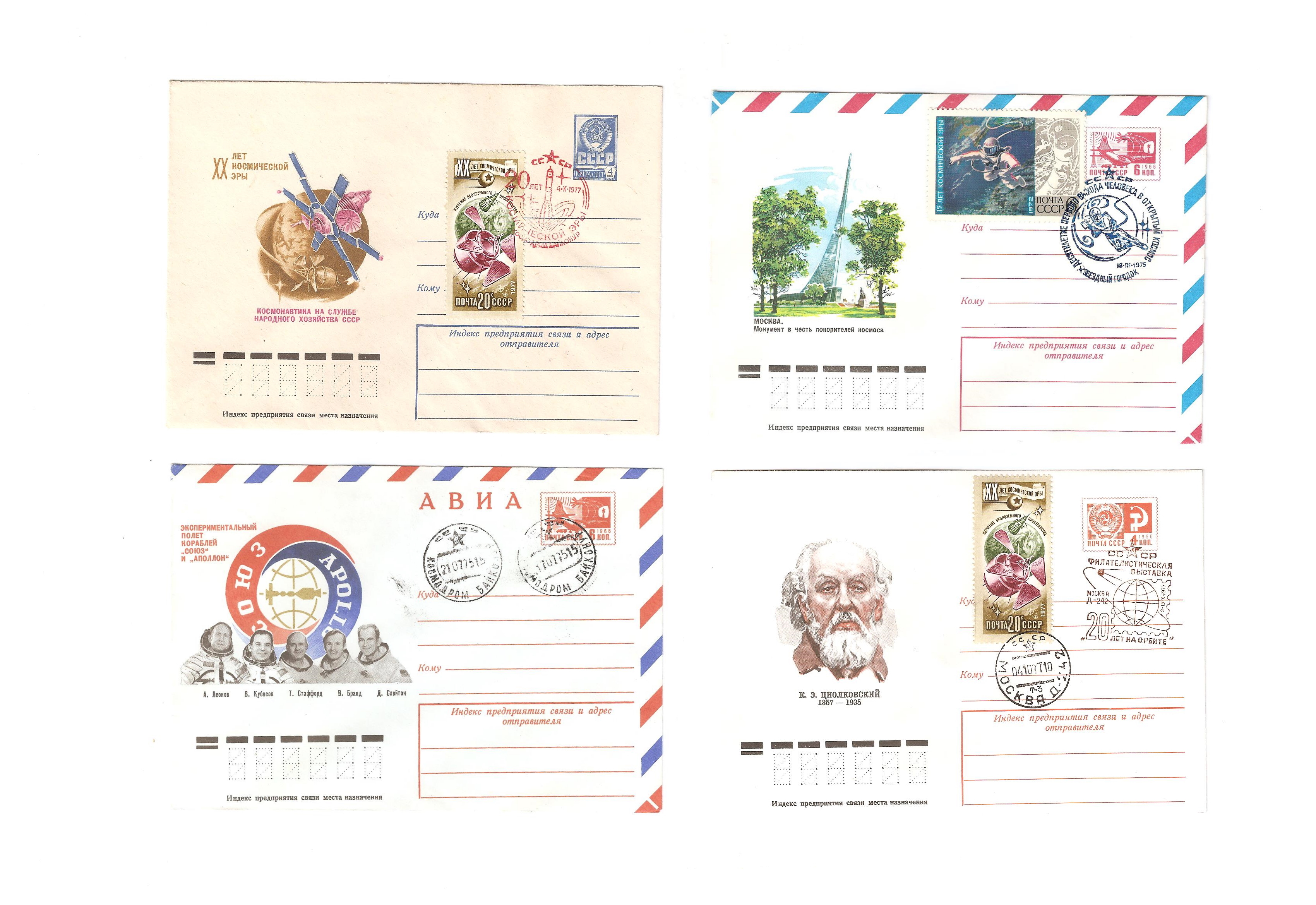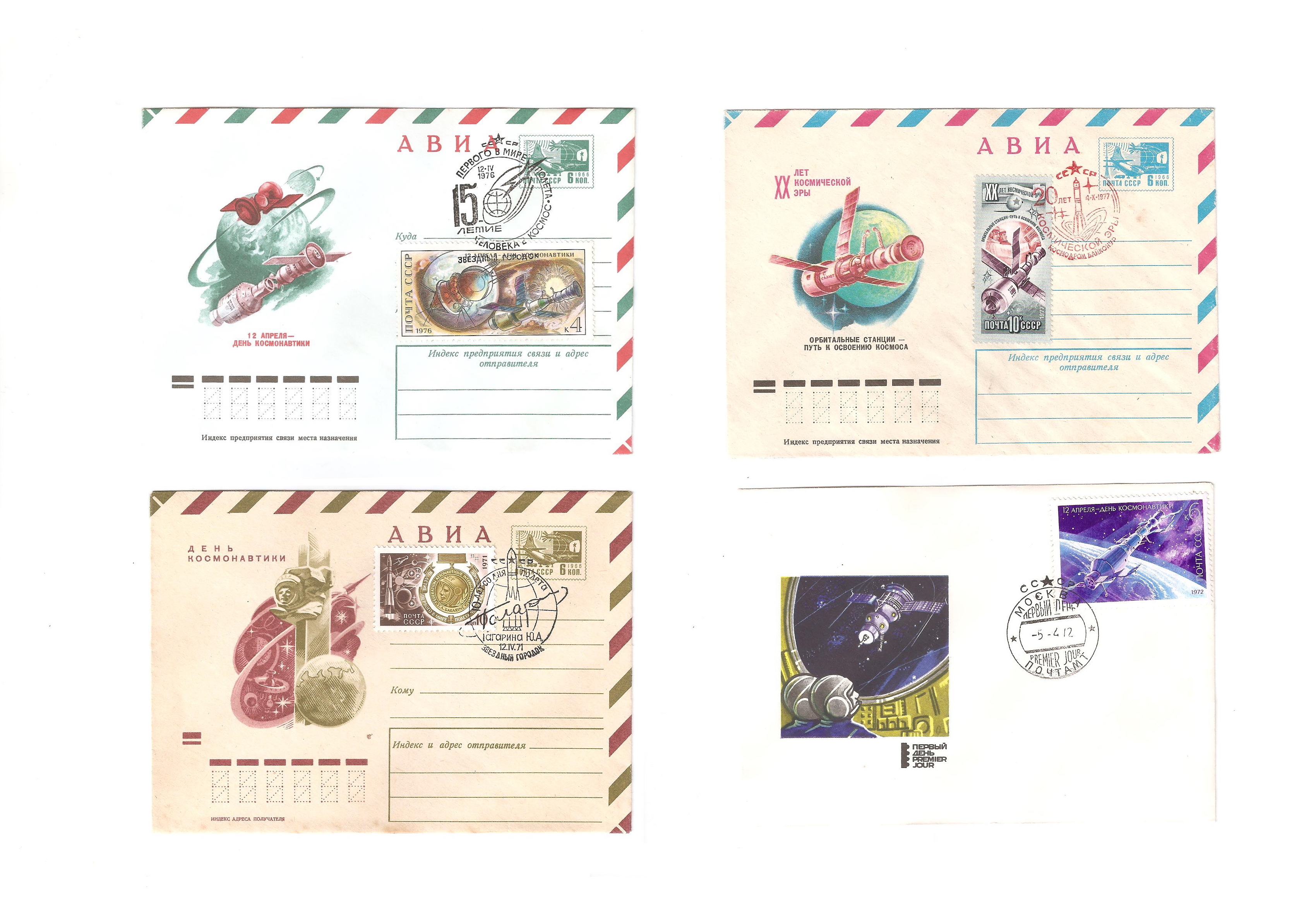 Набор почтовых коллекционных конвертов 4 шт. - "КОСМОС" со спецгашением СССР