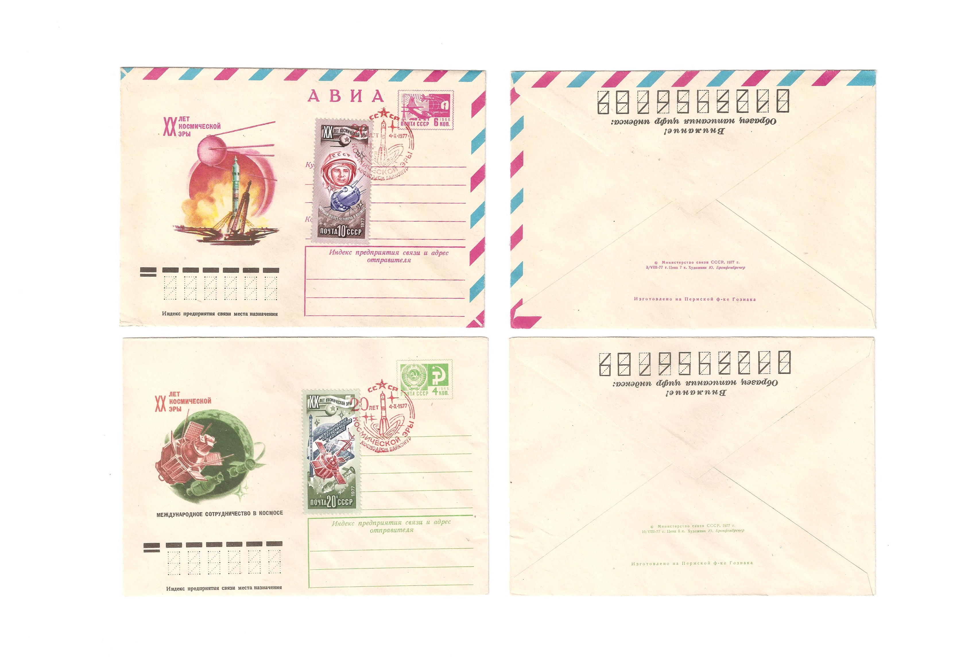 Набор почтовых коллекционных конвертов 2 шт. - "КОСМОС" со спецгашением СССР