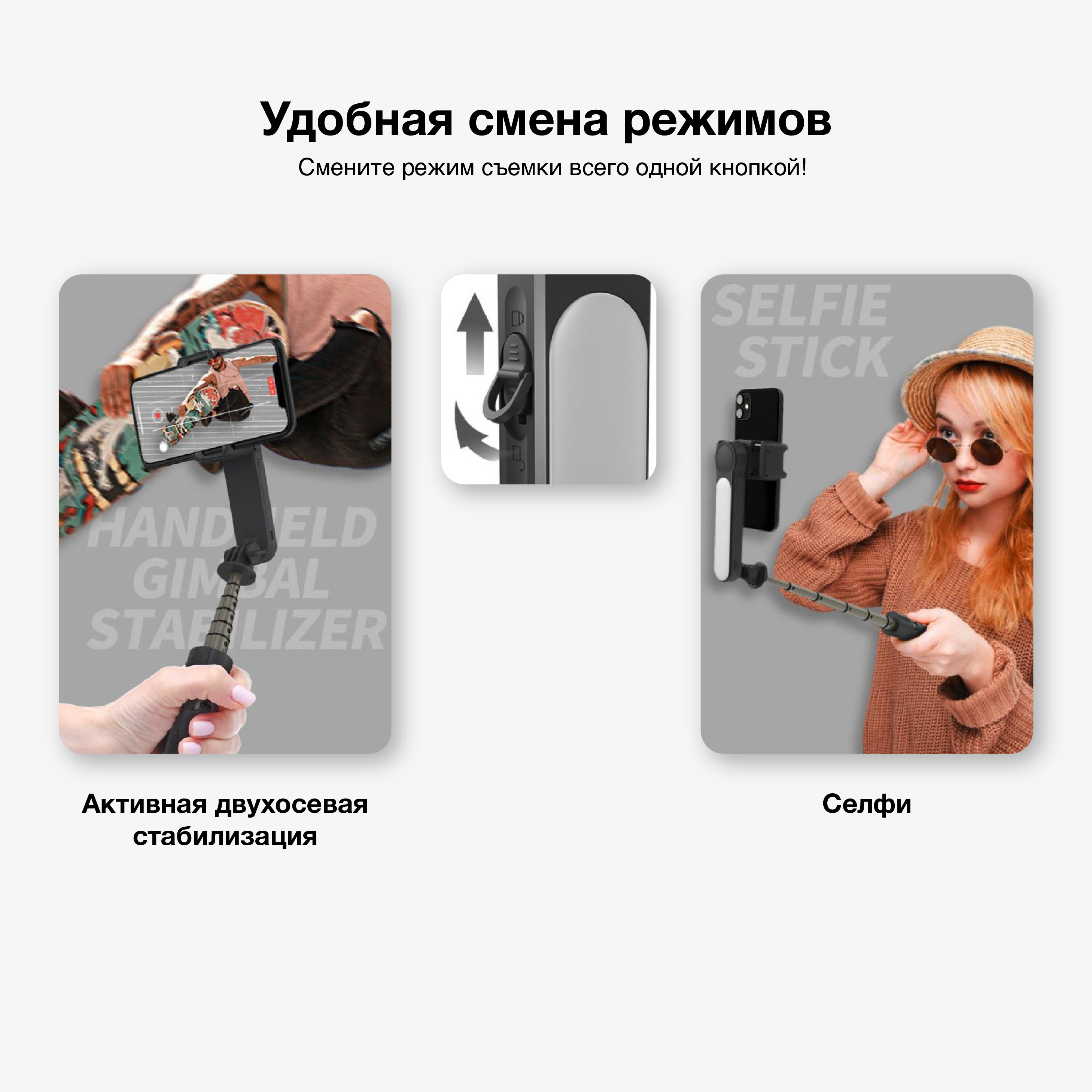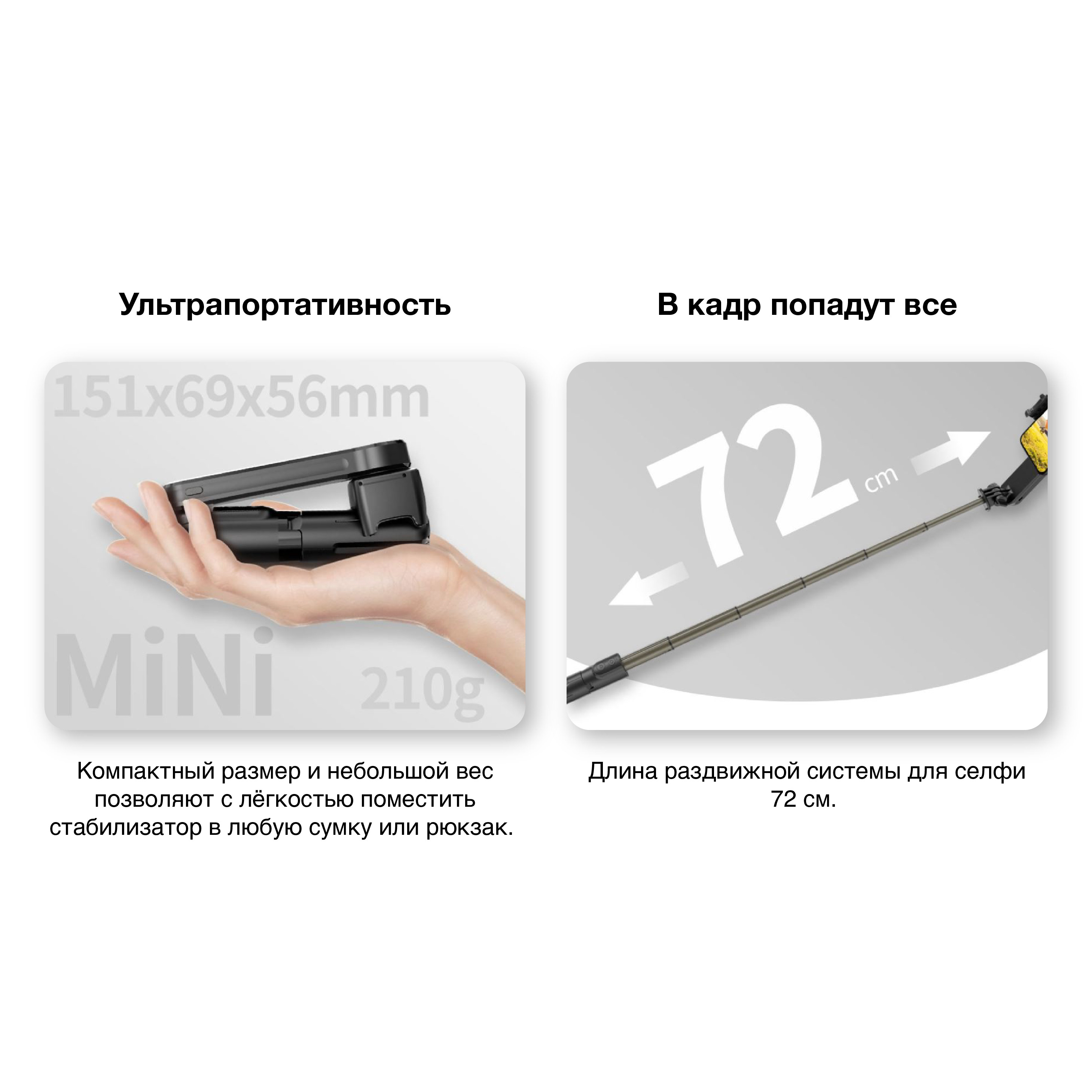 Стабилизатор для телефона L08 с Bluetooth пультом. 4 в 1: штатив, монопод, трипод для селфи. Черный