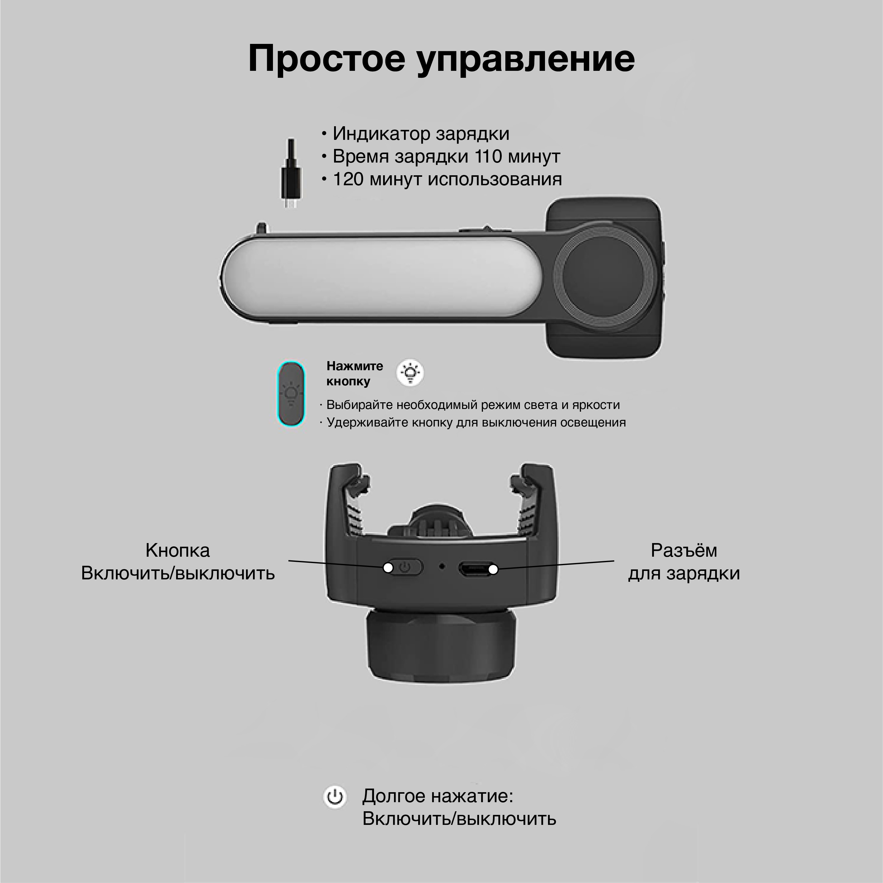Стабилизатор для телефона с LED лампой, Bluetooth, функций селфи палки, и штативом KiT