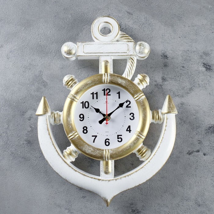 Часы настенные, серия: Море, "Якорь", бело-золотые, 39 см