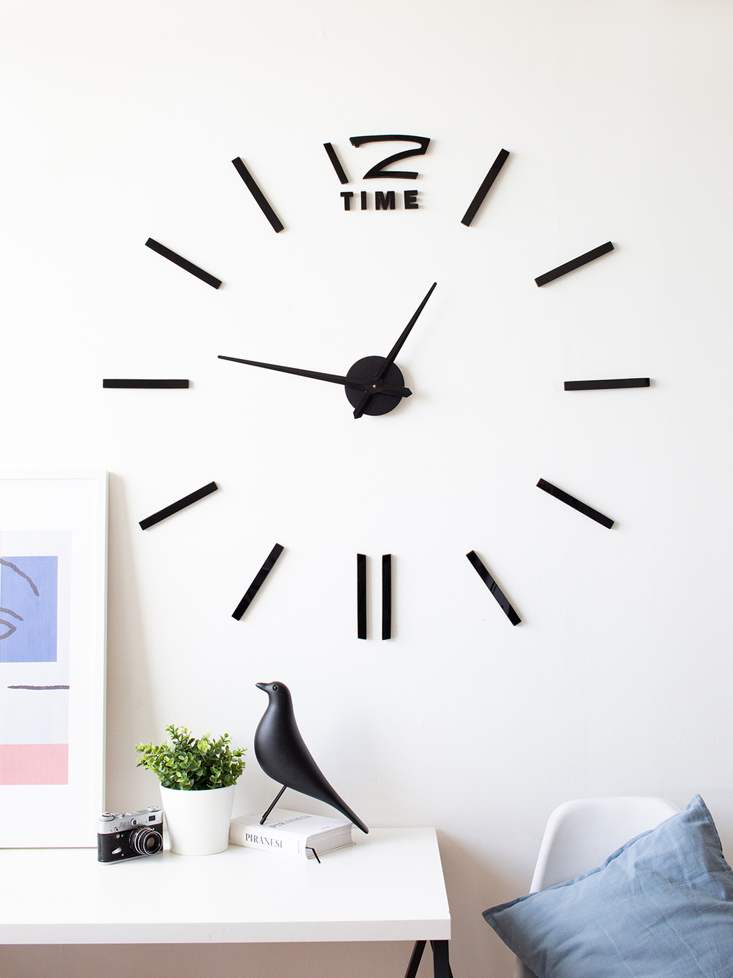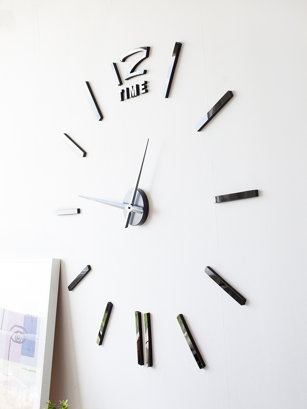 Часы-наклейка DIY "Аба", чёрные, d-70 см, плавный ход, (+механизм)