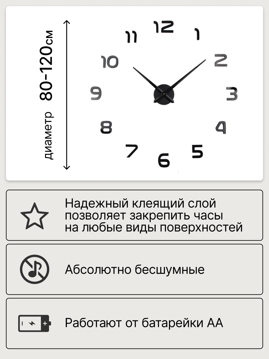 Часы настенные "Влада" 3D большие бесшумные 80-120 см
