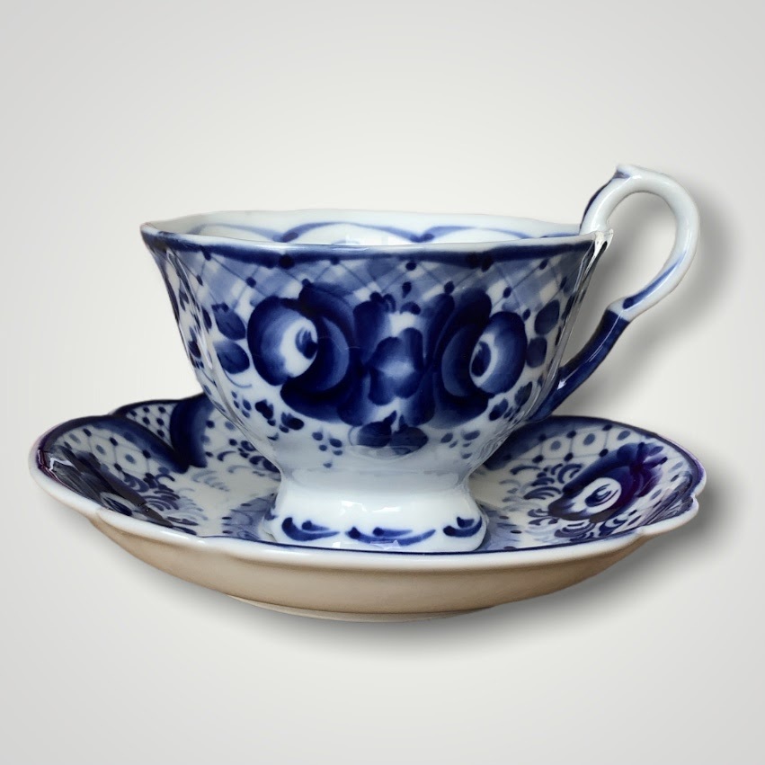 Чайная пара гжель "Роза" 200мл фарфор 12.5см х 10см х 8см ручная работа