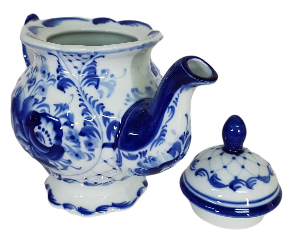 Чайник сувенирный "Танк" 12х7х8 см гжель фарфор ручная работа