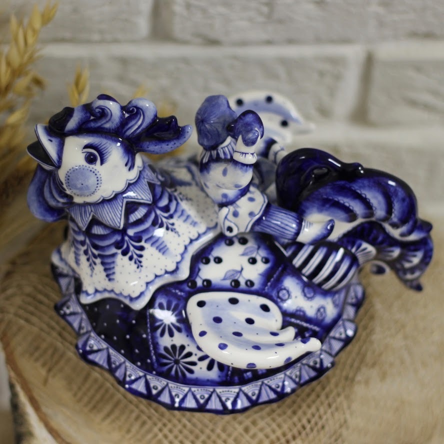 Блинница "Уточка" 25х25х19 см гжель фарфор ручная работа