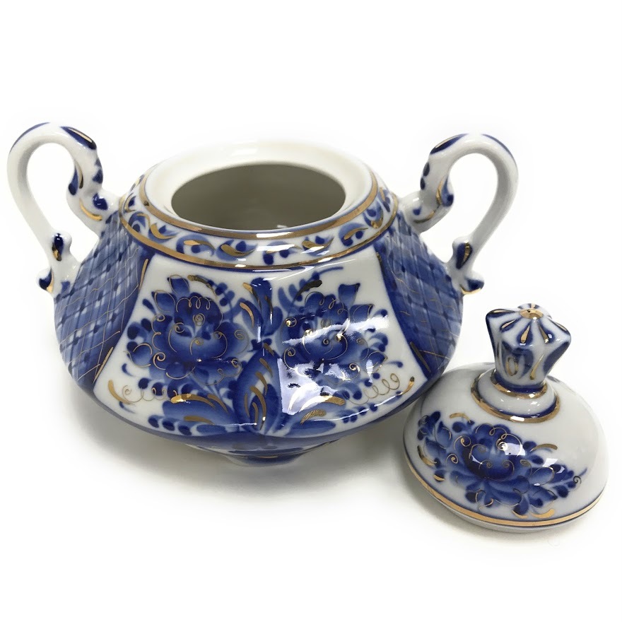 Сахарница кофейная в золоте (17,5*15,5*13,5) гжель фарфор ручная работа