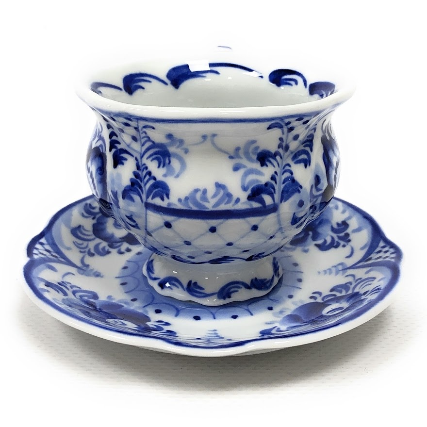 Кофейная пара "Тюльпан" №2, 130 мл, гжель фарфор ручная работа