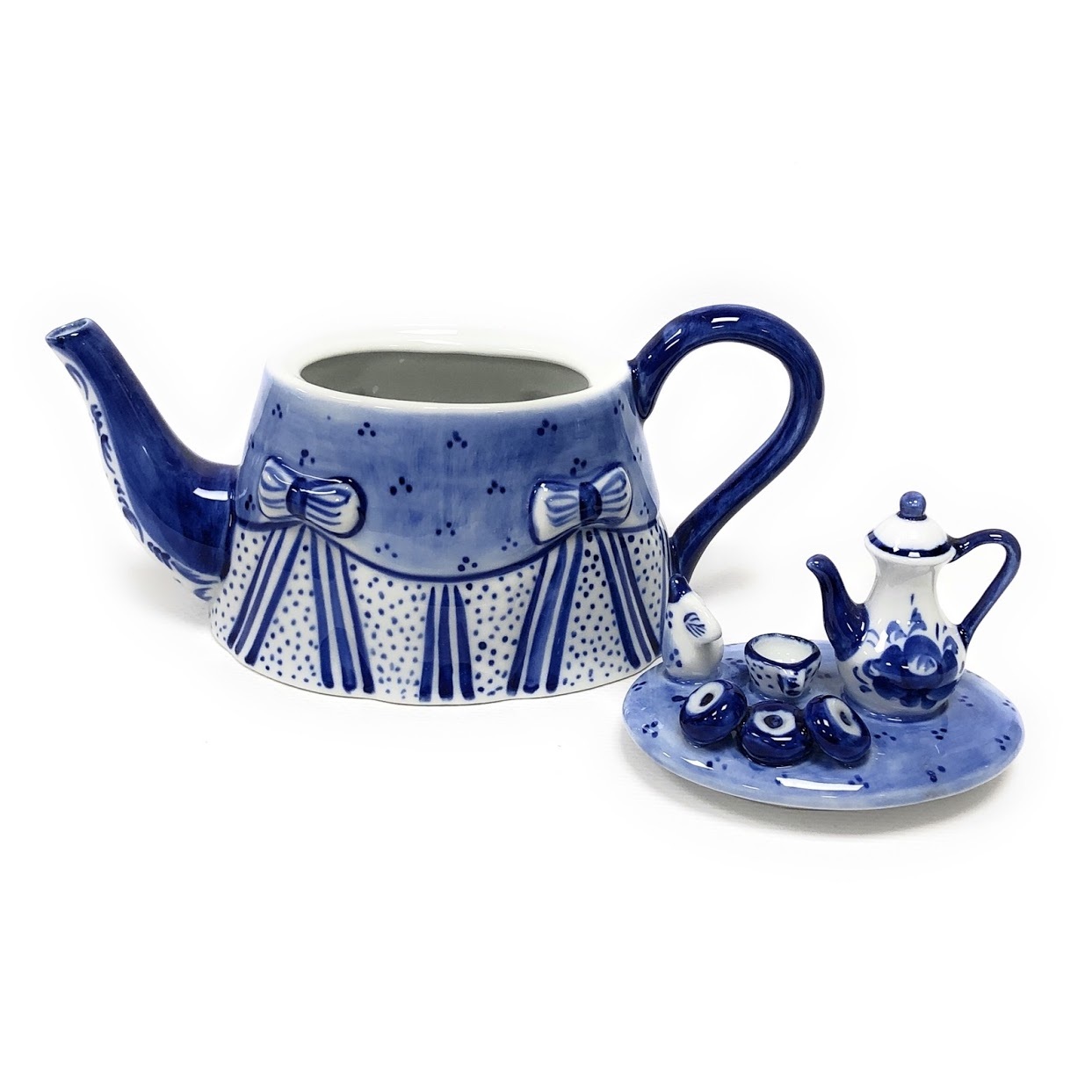Чайник сувенирный "Стол" 14 см гжель фарфор ручная работа сделано в России