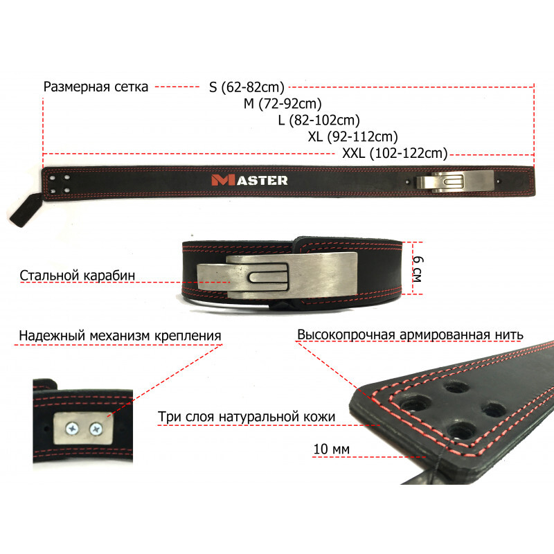 Пояс атлетический MASTER, 3-х слойный, кожа, спинка 10см