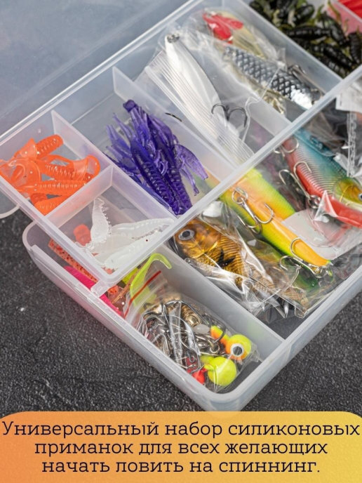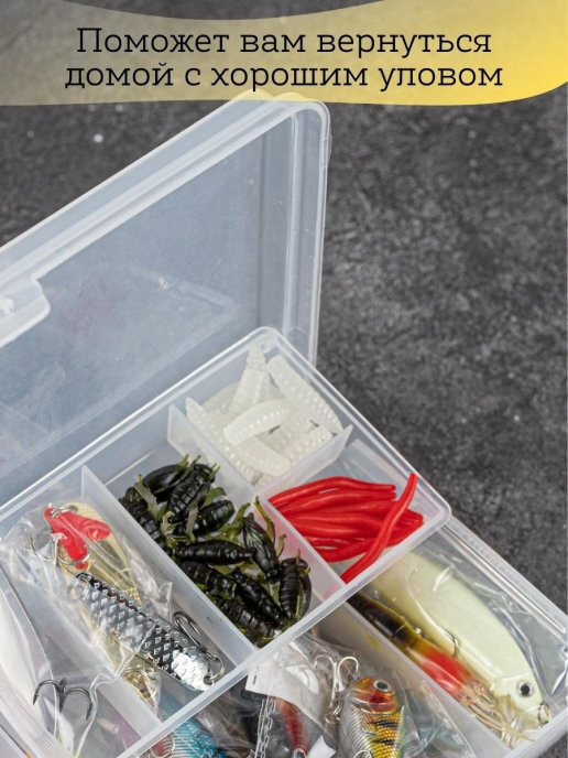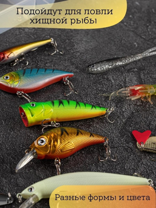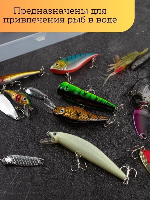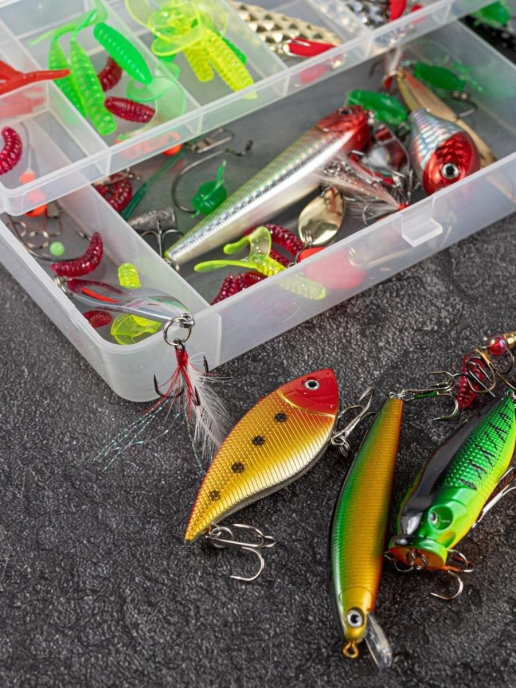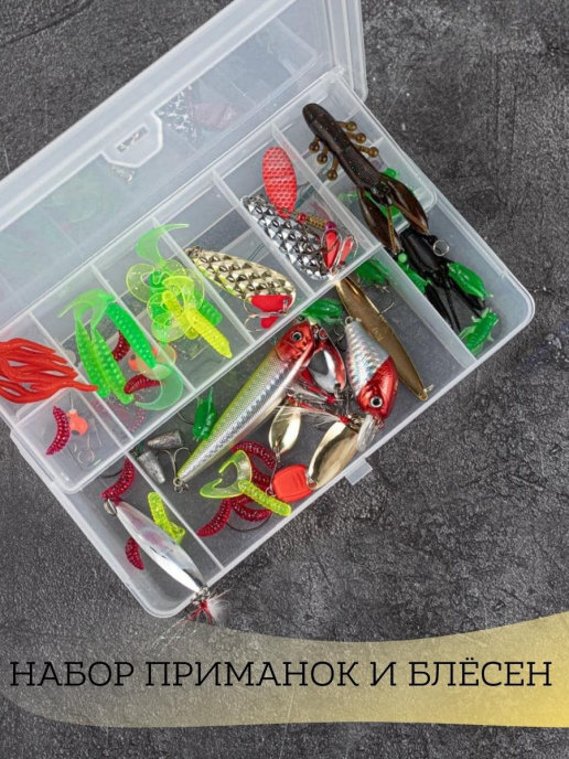 Набор приманок и блесен в кейсе / Блесна и приманки для рыбалки / Подарочный рыболовный набор / Набор приманок для ловли рыбы