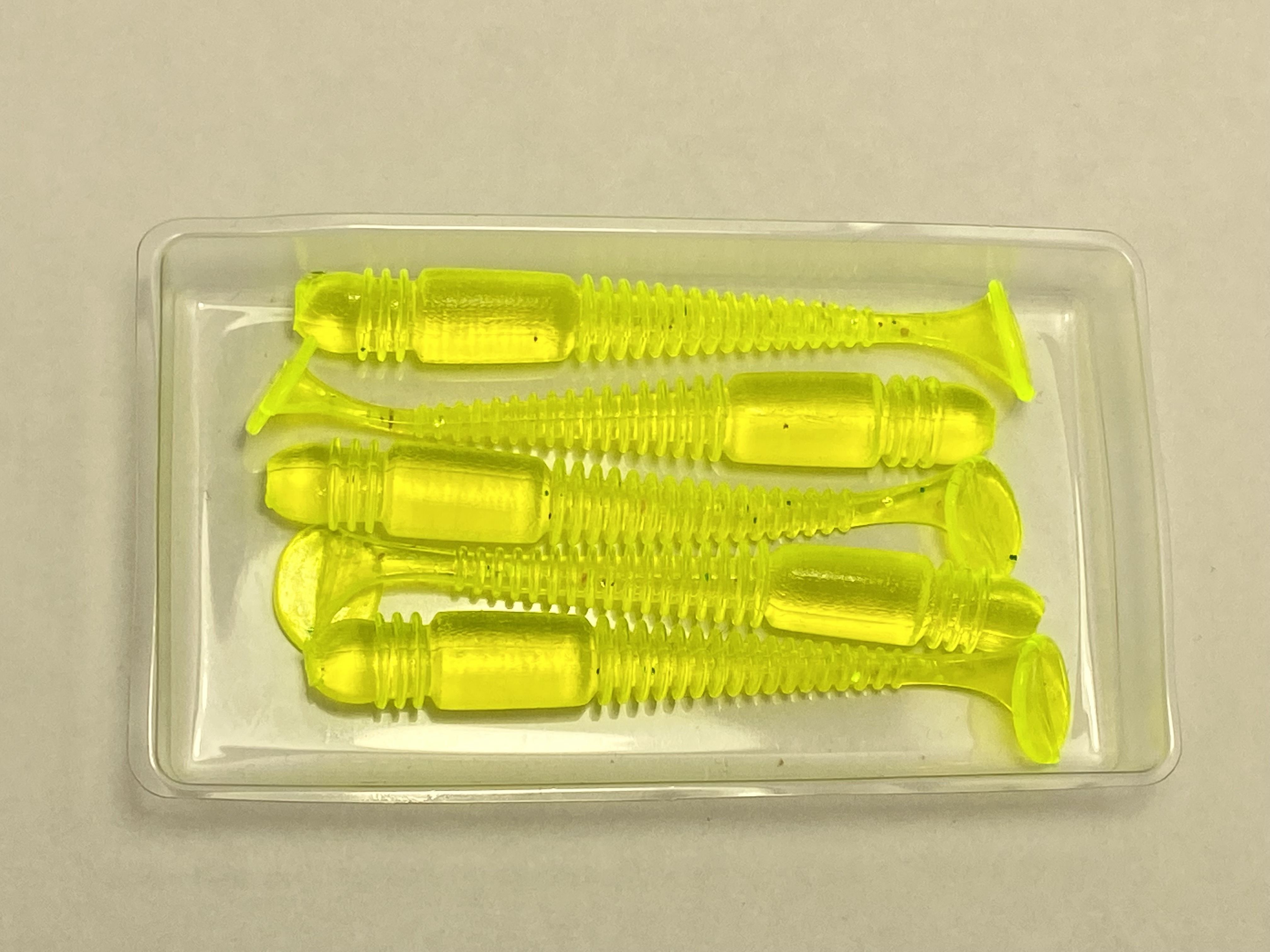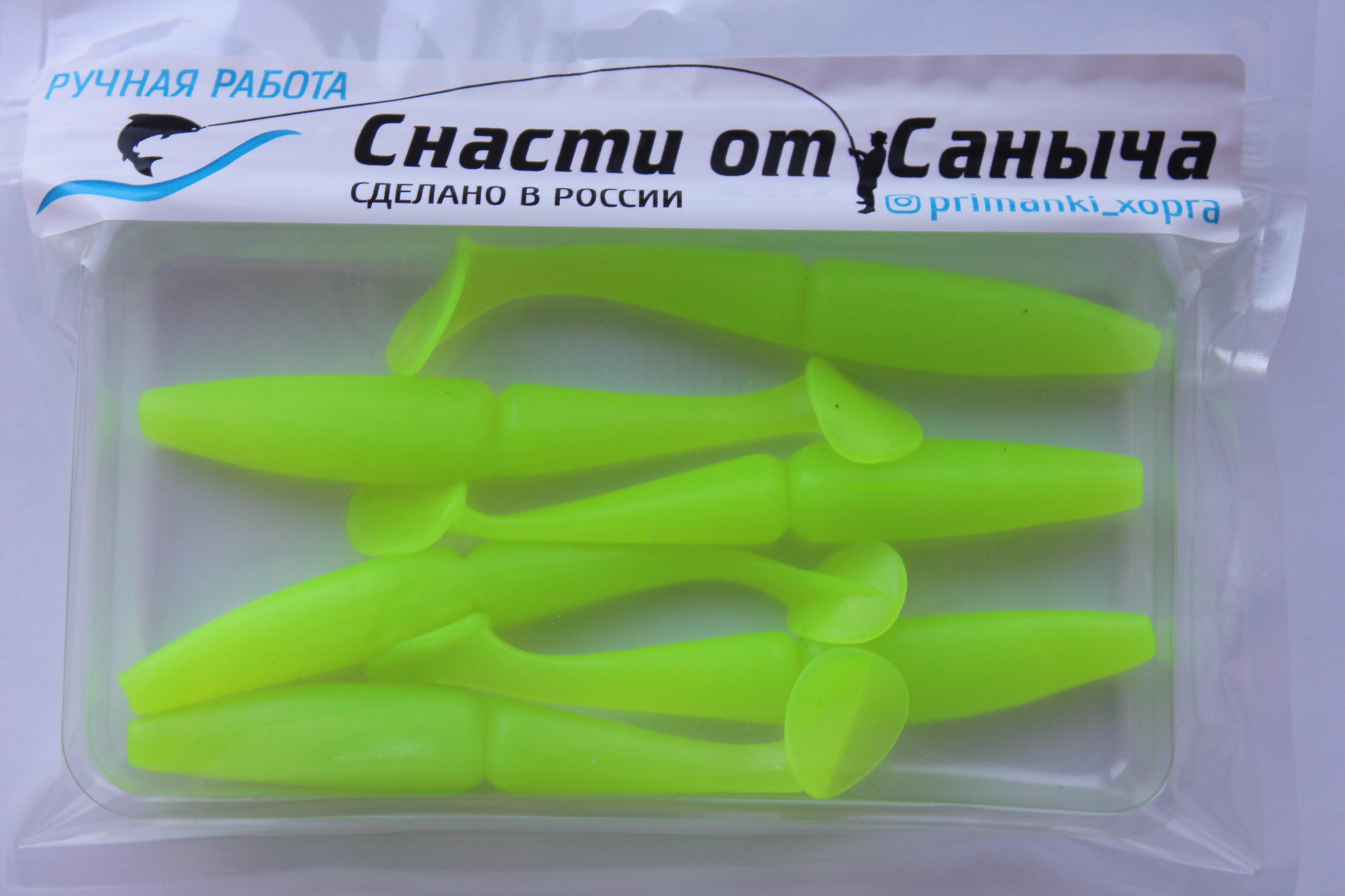Силиконовая приманка, виброхвост из плавающего силикона Tioga салатовый флюарисцентный.