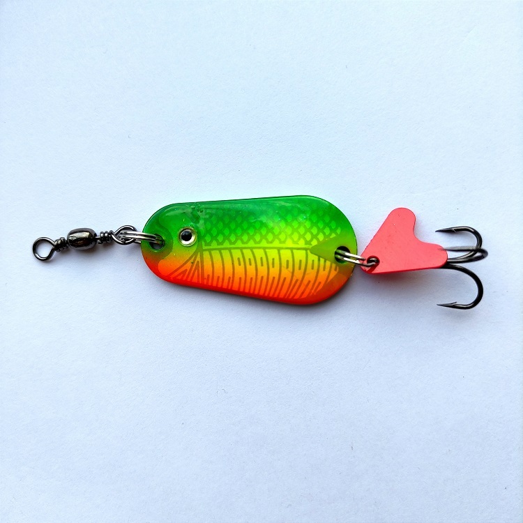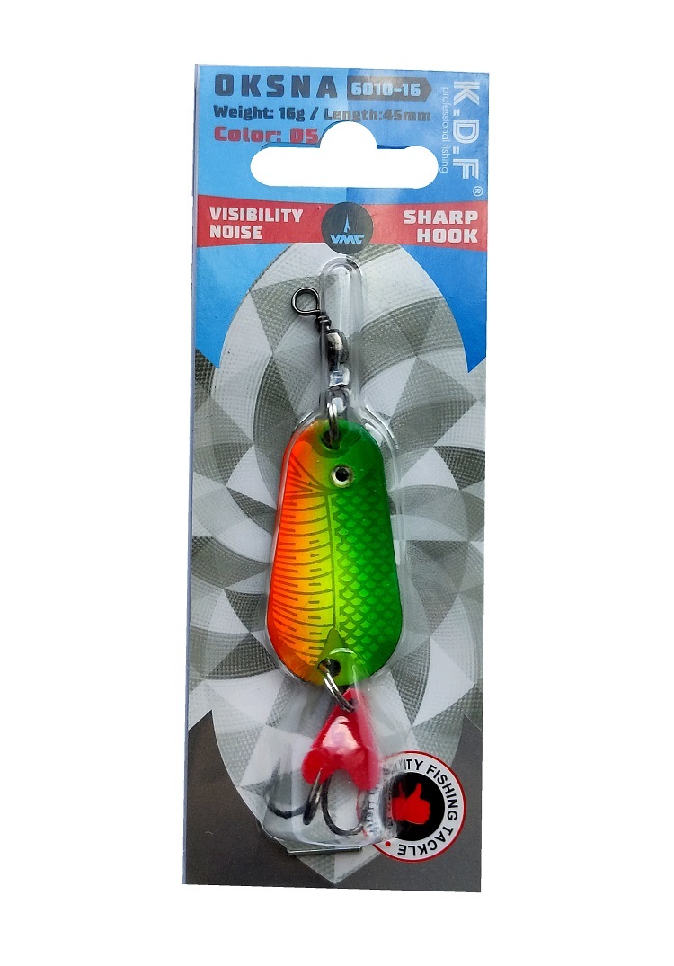 Блесна колеблющаяся Oksna 16 гр. 45мм. С вертлюгом. Цвет зеленый, желтый, алый.