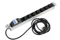 R-16-7S-A-440-3 Блок силовых розеток Rem Rem-16 горизонтальный неуправляемый Shuko х 7 вход Schuko шнур 3 м 1U 484х45х45 (ШхГхВ) 16А автомат
