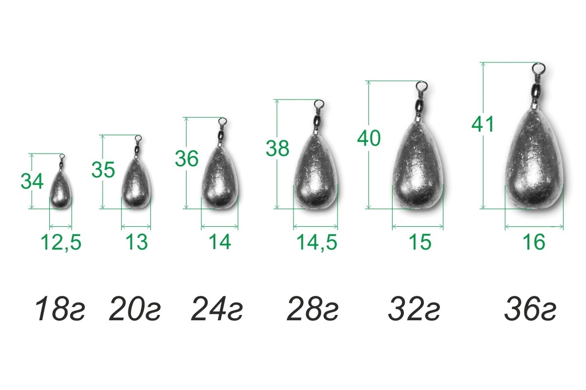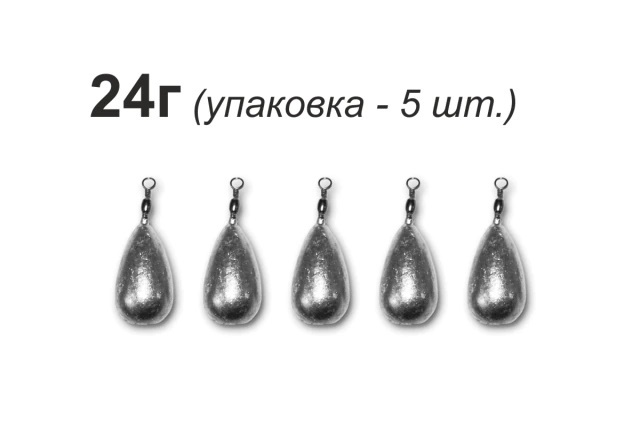 Груз "Капля" с вертлюгом, грузило для рыбалки, рыболовный грузик из свинца 24г НАБОР 5 штук