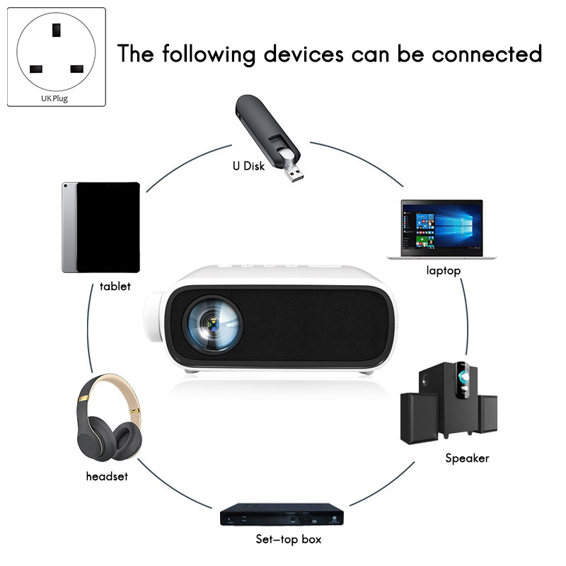 Мультимедийный проектор Мини проектор портативный с динамиком Led Projector YG300, желтый, белый