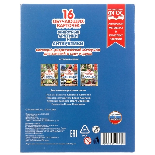Набор карточек Умка Животные Арктики и Антарктики 21.8x16.7 см 16 шт.