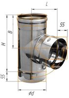Сэндвич дымоход Дымофф Тройник сэндвич 90 230*150 AISI430 0.5мм/AISI304 0.8мм
