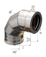 Колено Феррум утепленное угол 90° нержавеющее (430/0,5мм)/зеркальное, ф120/200, по воде