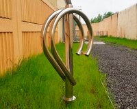 Парковка для велосипедов из полированной нержавеющей стали. Велопарковка на один велосипед.