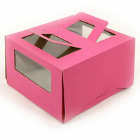Короб для торта малиновый (розовый) с ручками, с окном, 260х260х200
