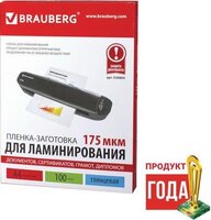 Пленки-заготовки для ламинирования BRAUBERG, комплект 100 шт., для формата А4, 175 мкм, 530804