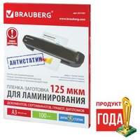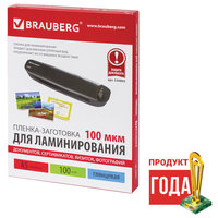 Пленки-заготовки для ламинирования BRAUBERG, комплект 100 шт., 85х120 мм, 125 мкм, 530901